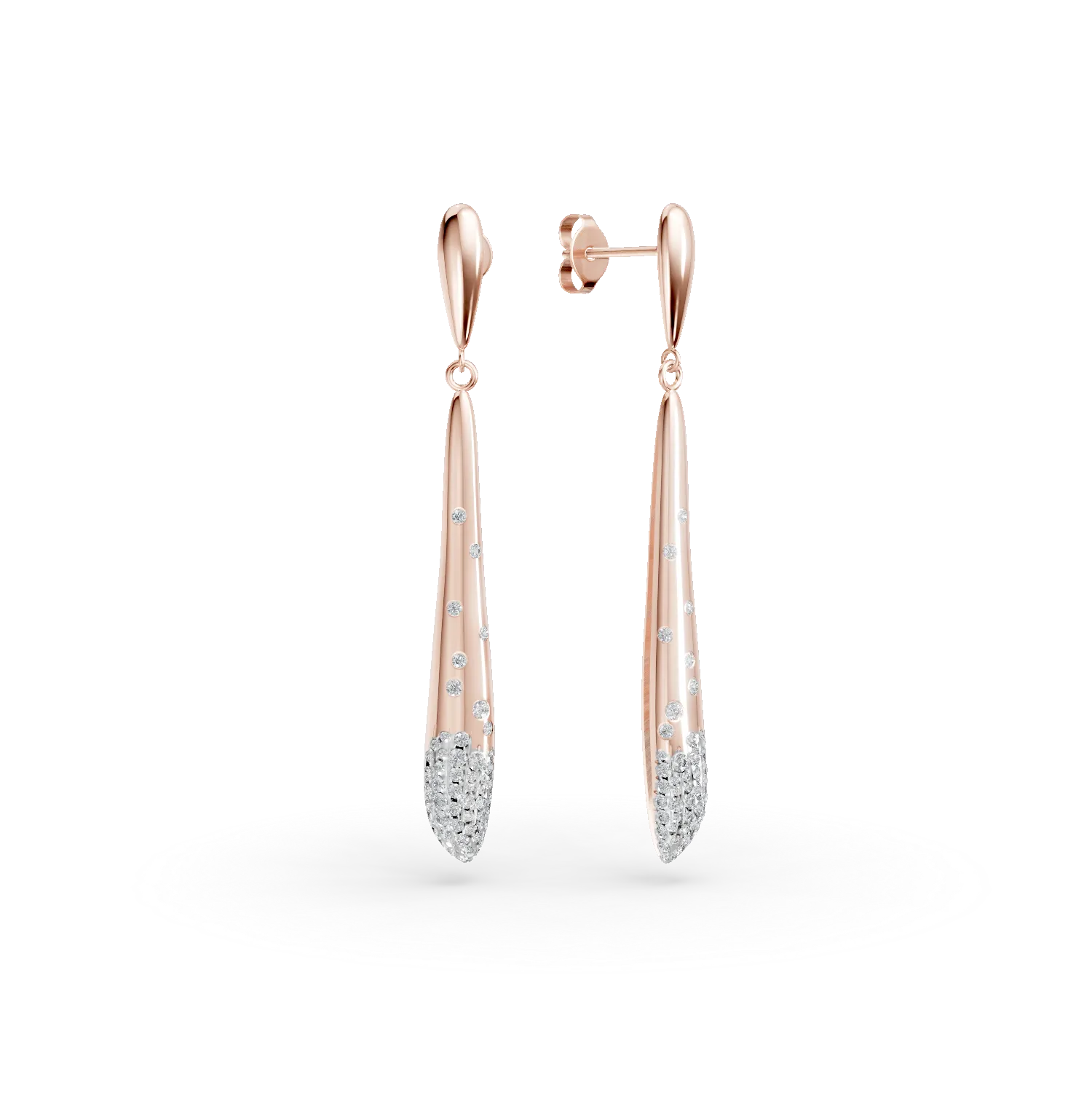Cercei lungi din aur roz cu diamante de 0.5ct