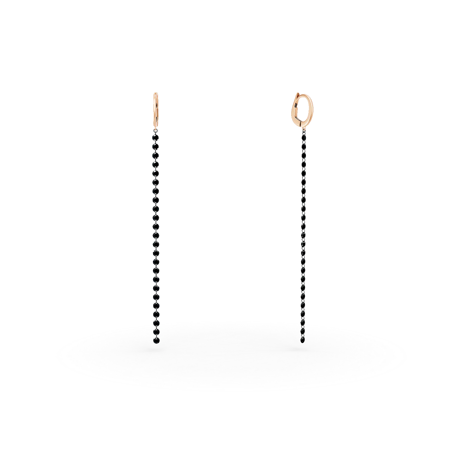 Cercei lungi din aur roz cu diamante negre de 2.5ct