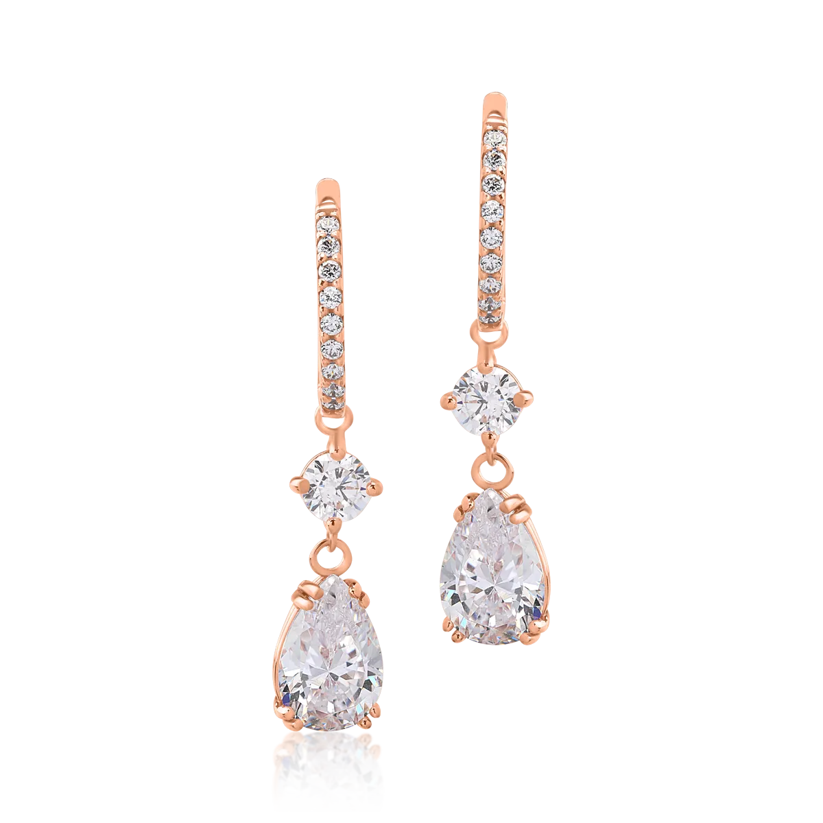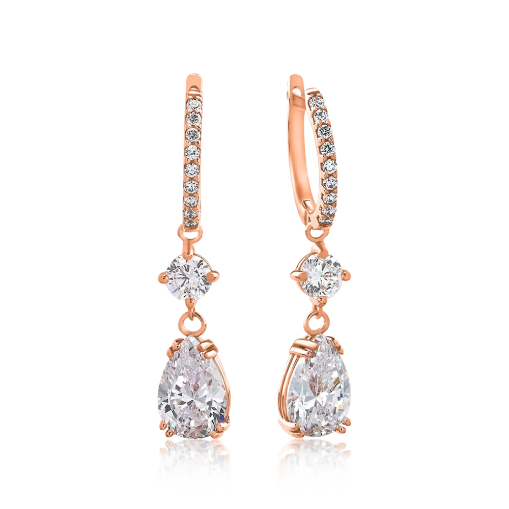 Cercei lungi din aur roz cu zirconii