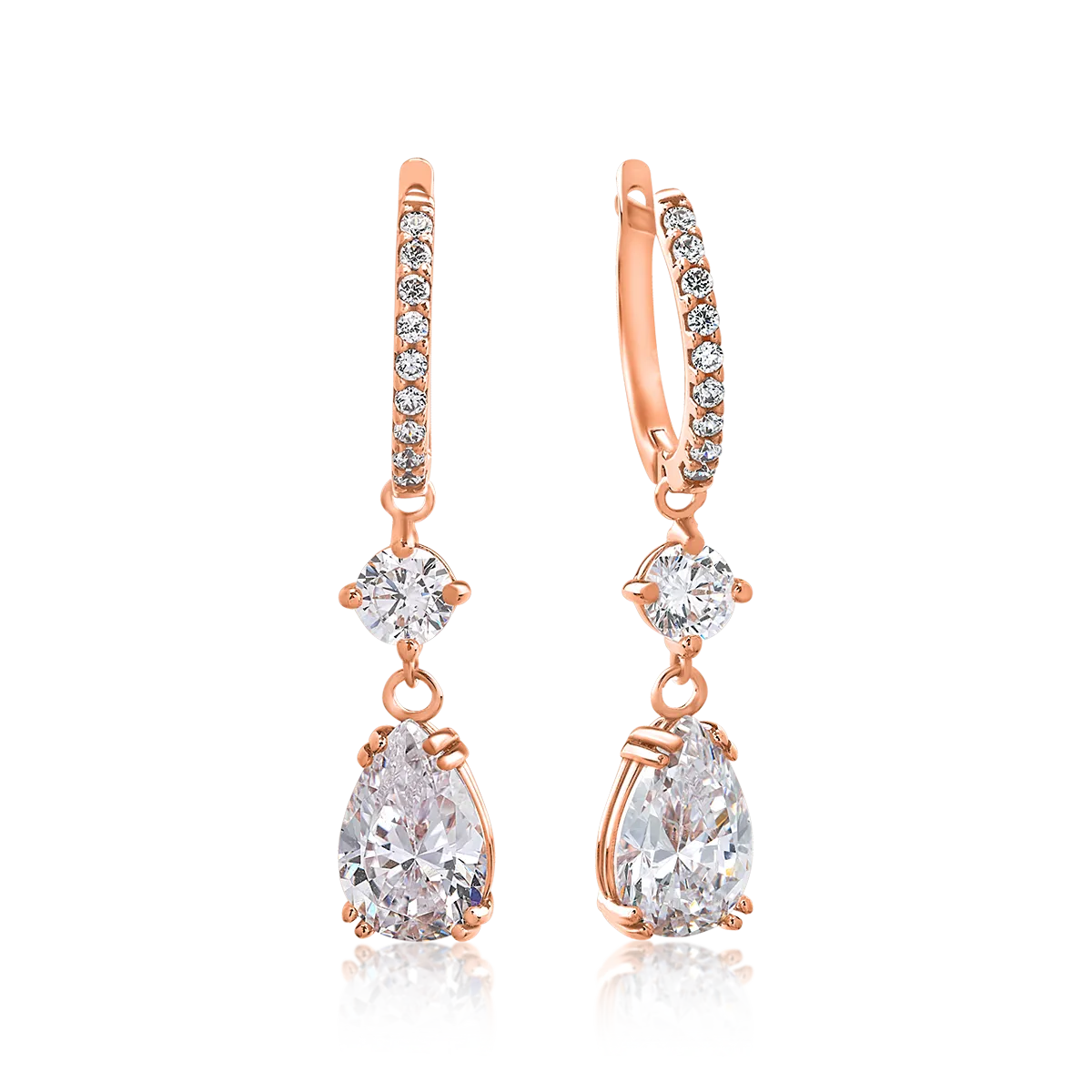 Descopera bijuteriile care iti descriu personalitatea si iti dau incredere in tine. Perechea de cercei lungi din aur roz cu zirconii contureaza o simfonie de reflexii care captiveaza privirile. La fel ca tine. O piesa pe care iti doresti sa o porti iar si iar. Alege sa iti fie sursa de inspiratie.