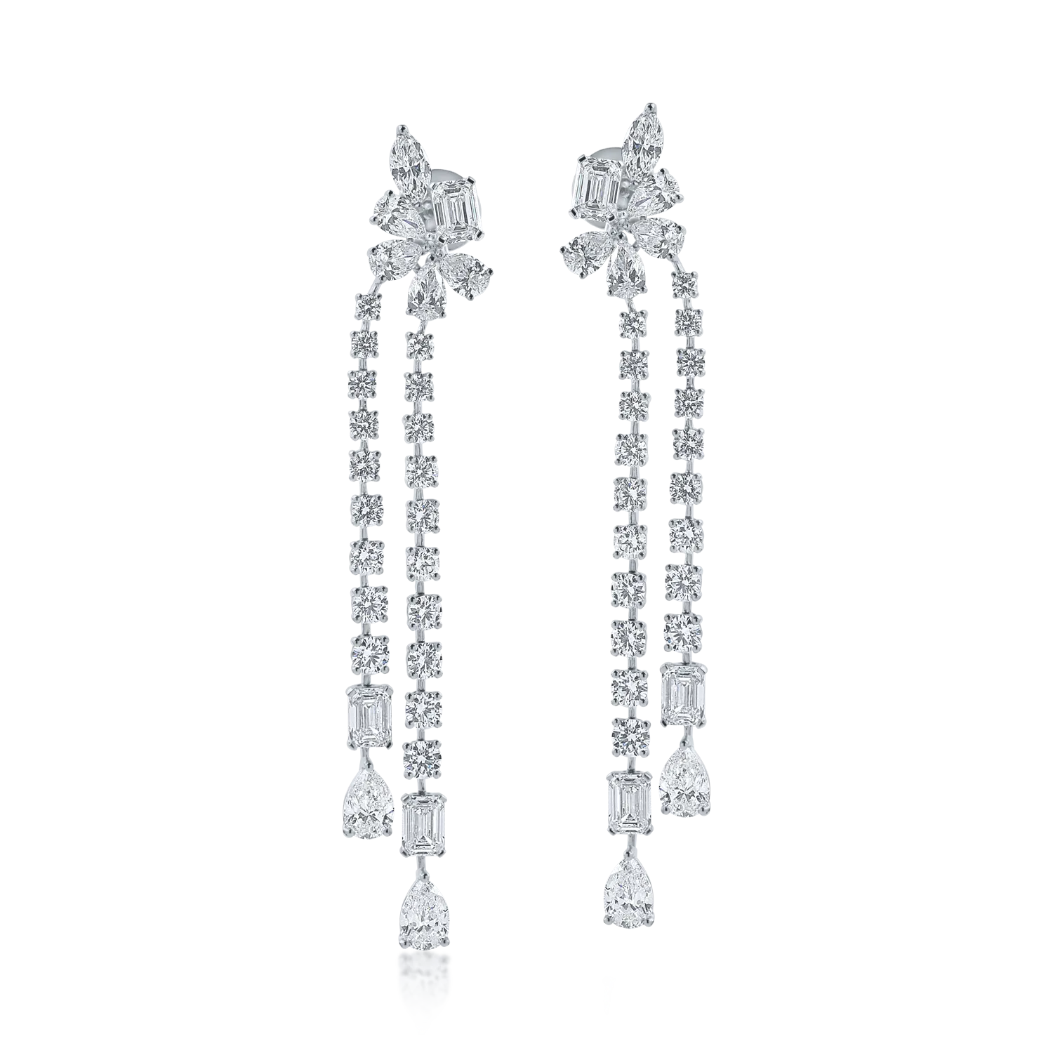 Cercei lungi dubli din aur alb cu diamante de 7.1ct