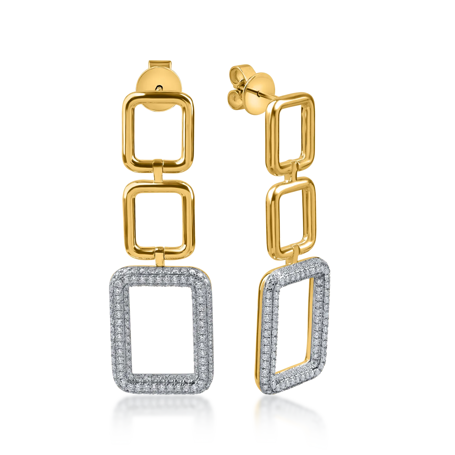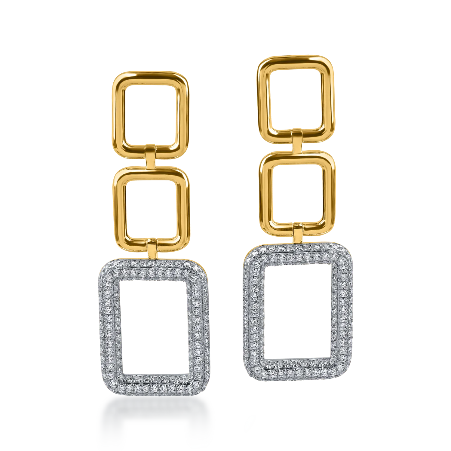 Cercei lungi geometrici din aur alb-galben cu diamante de 1.3ct