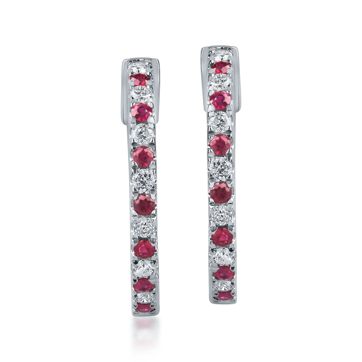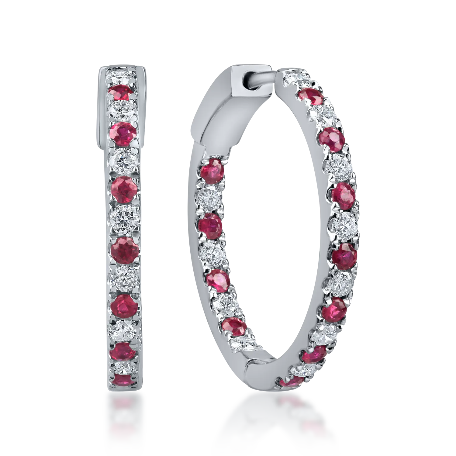 Cercei minimalisti din aur alb cu rubine de 0.8ct si diamante de 0.7ct