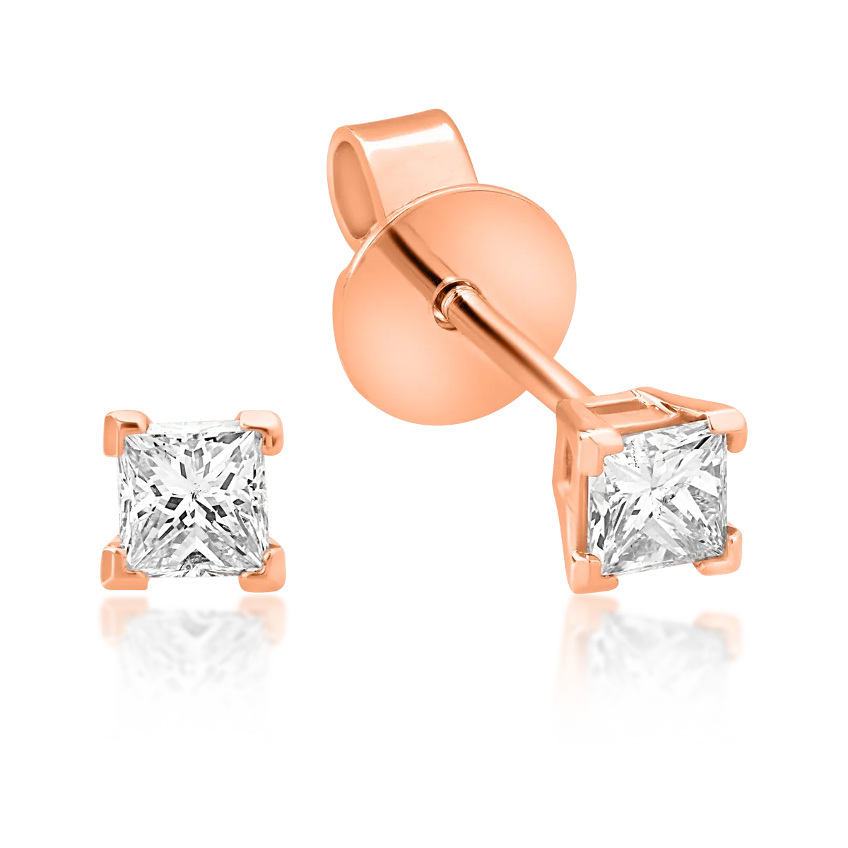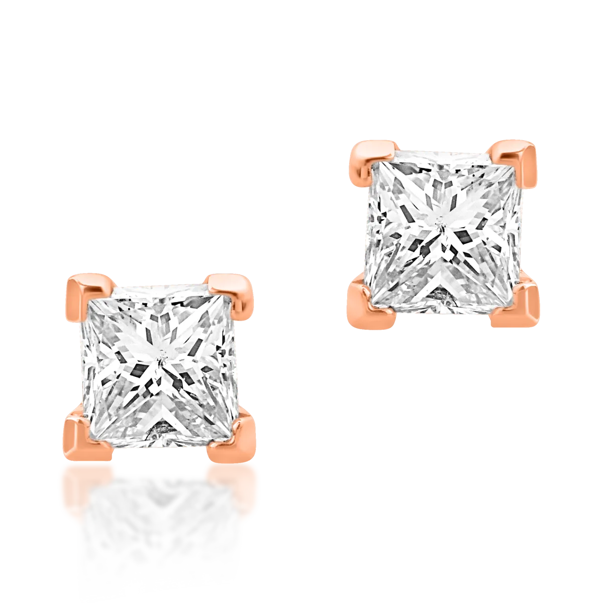Cercei minimalisti din aur roz cu diamante princess de 0.36ct