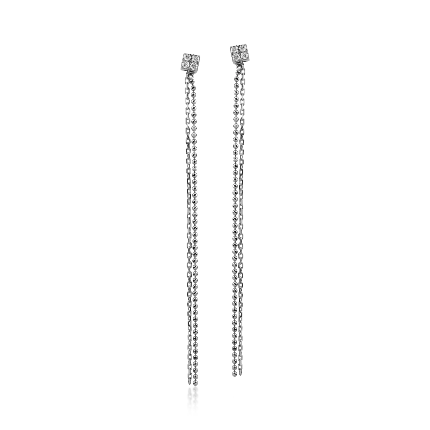 Cercei minimalisti lungi din aur alb cu diamante de 0.1ct
