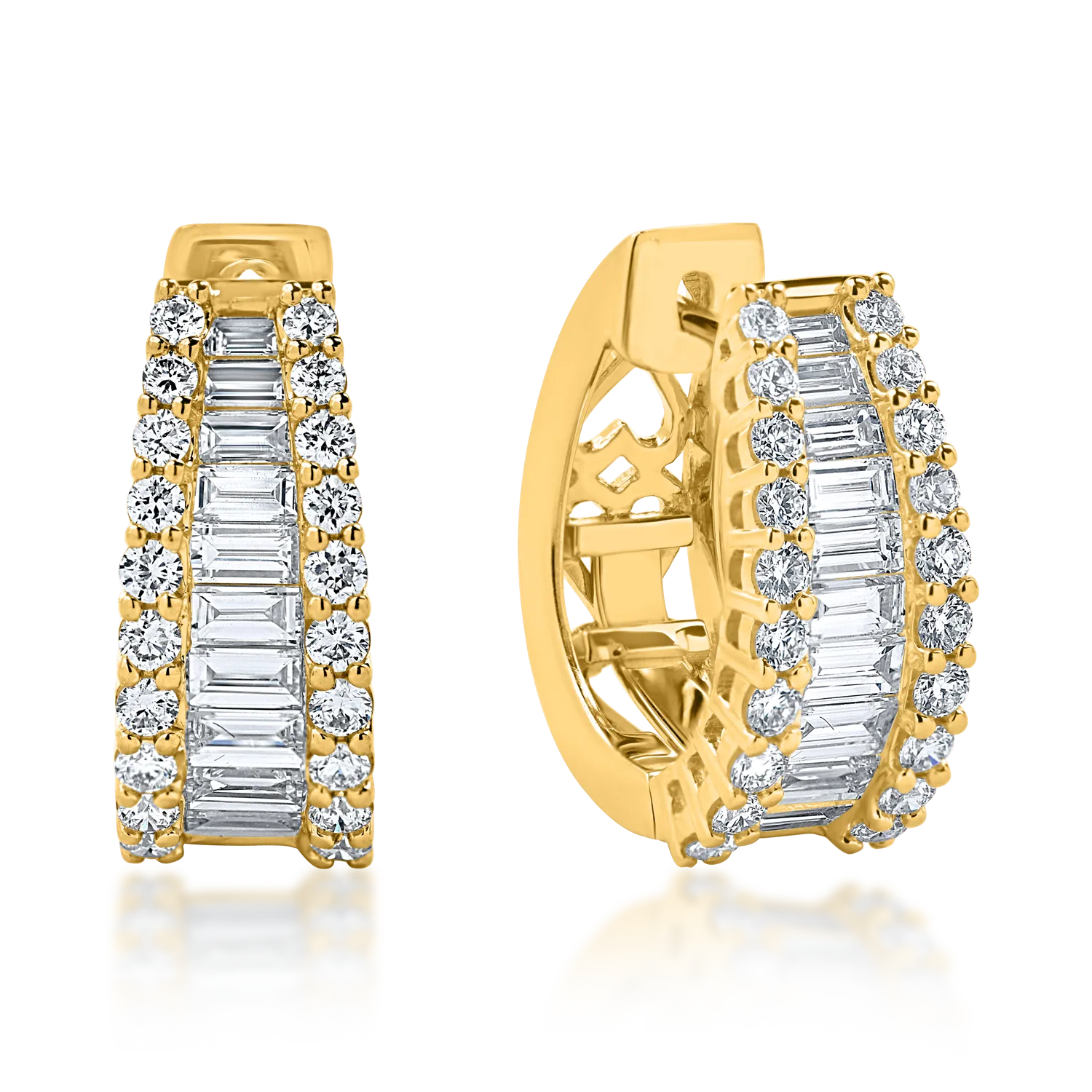 Cercei on ear din aur galben cu diamante baguette si rotunde de 1.9ct