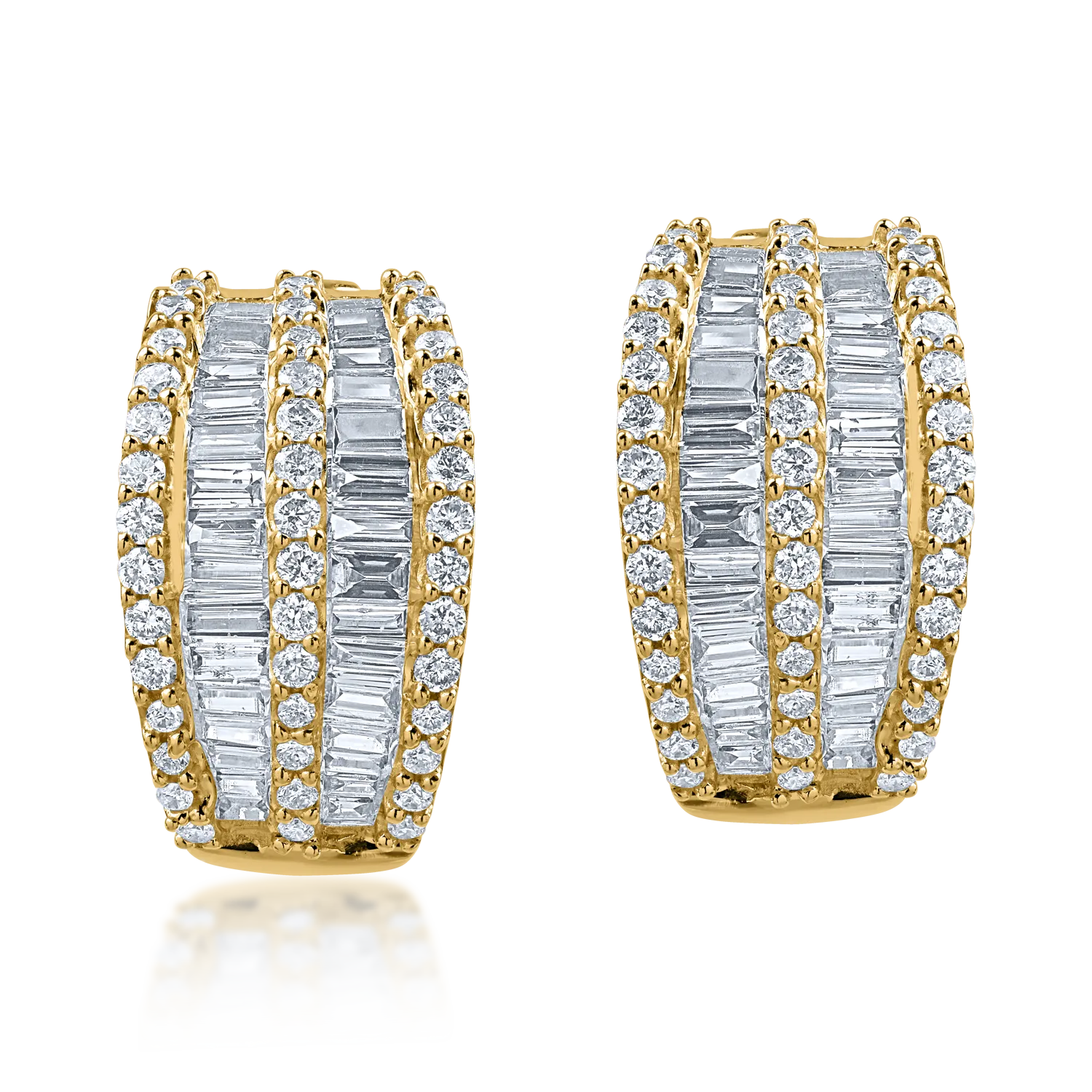 Cercei on-ear din aur galben cu diamante baguette si rotunde de 1ct