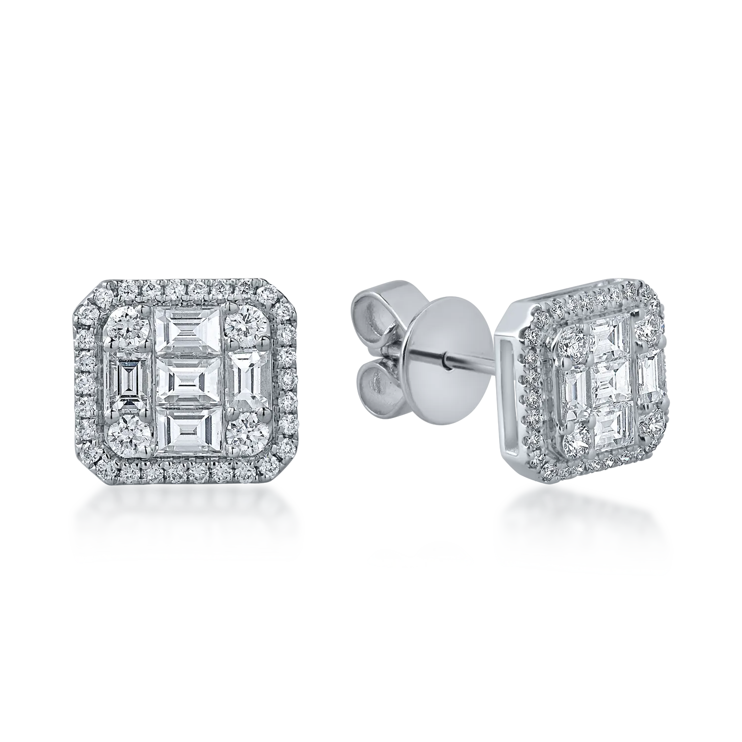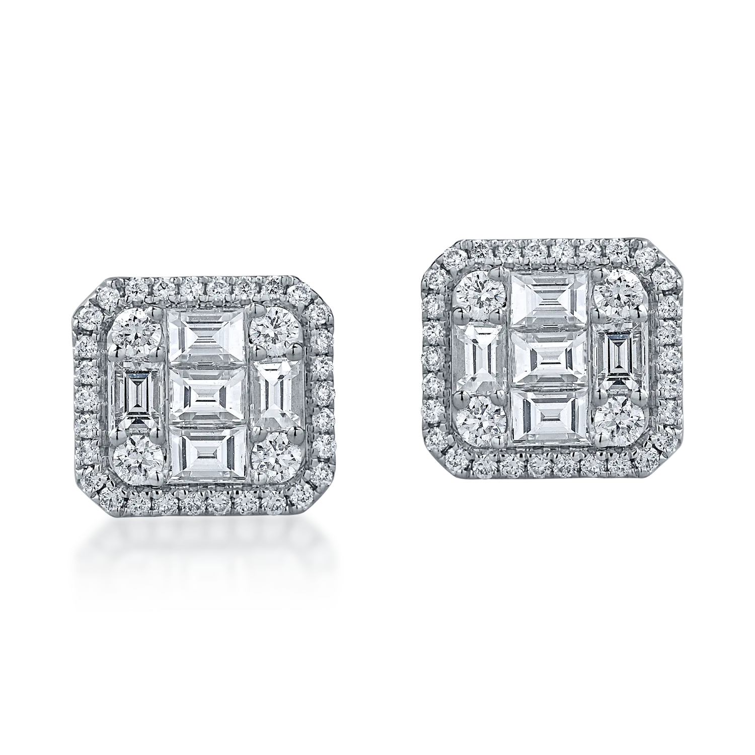 Cercei patrati din aur alb cu diamante baguette si rotunde de 0.7ct