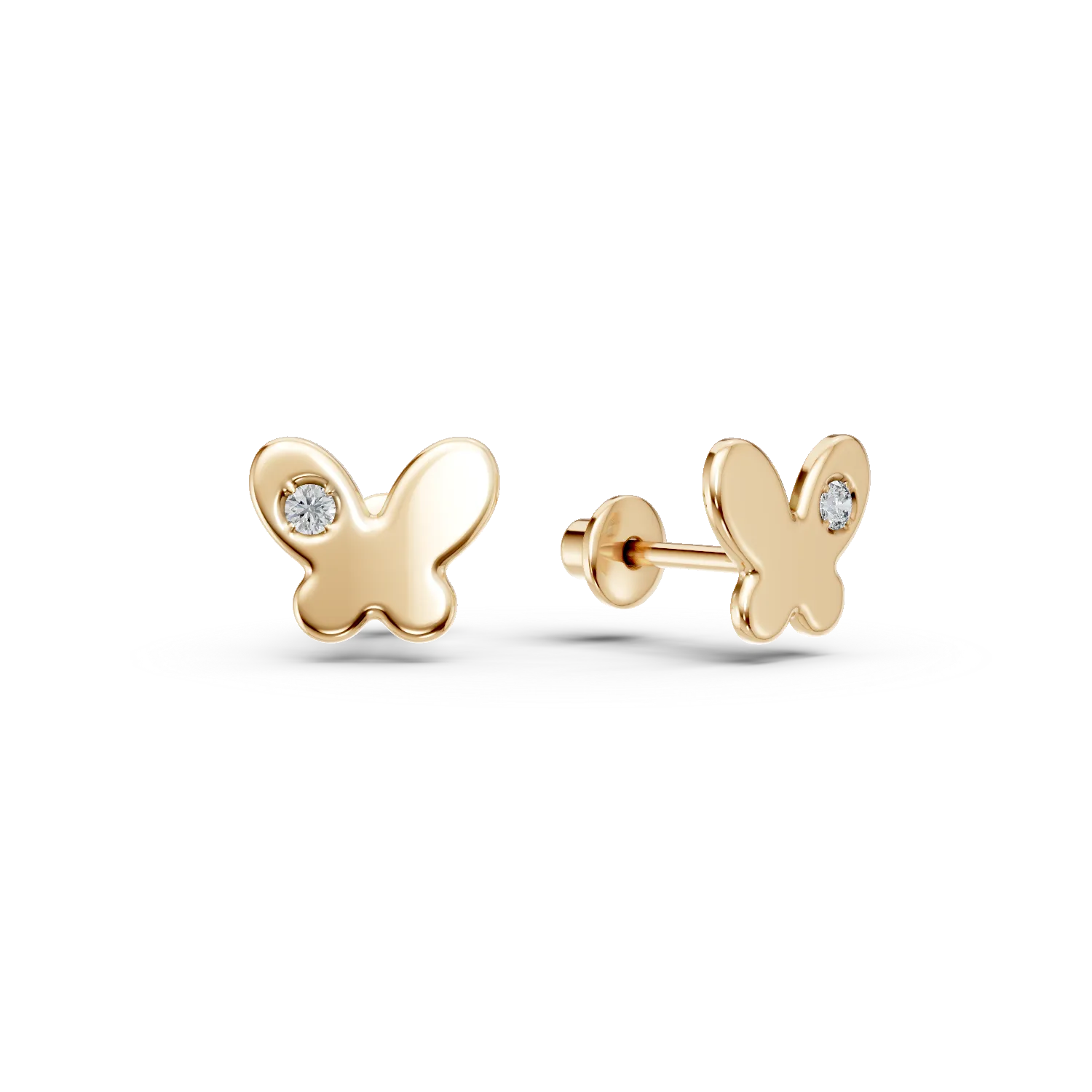 Cercei pentru copii cu fluturasi din aur galben cu diamante de 0.02ct