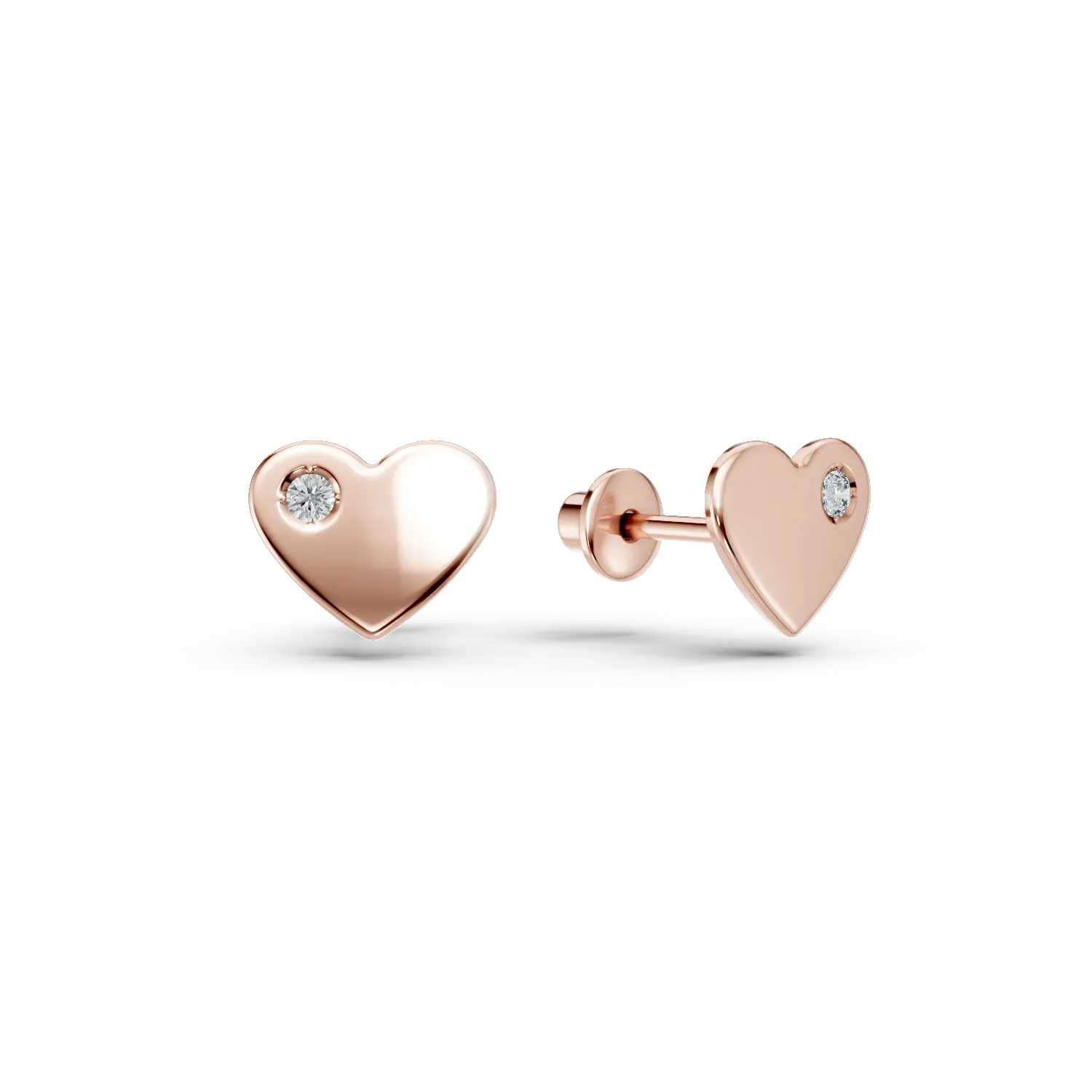 Cercei pentru copii cu inimioare din aur roz cu diamante de 0.01ct
