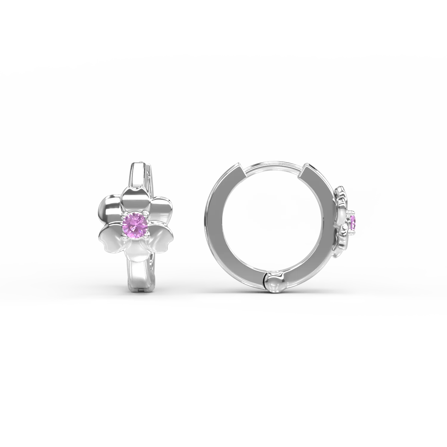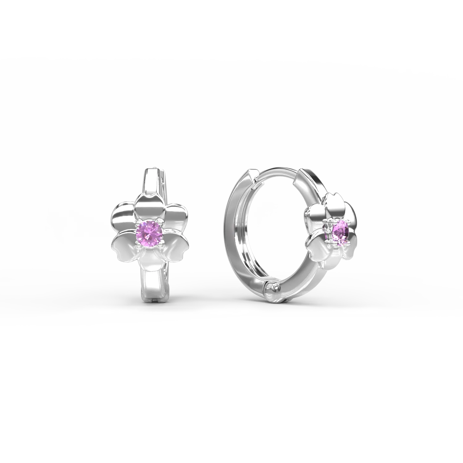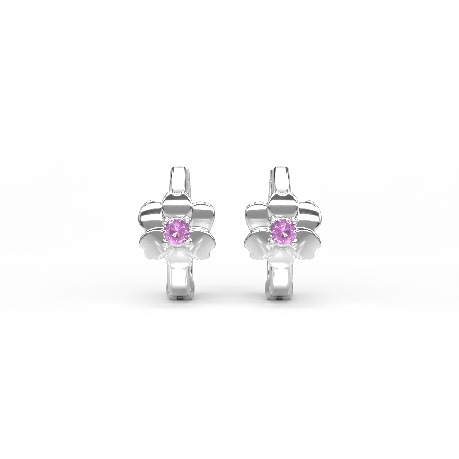 Cercei pentru copii floricele din aur alb cu safire roz de 0.072ct