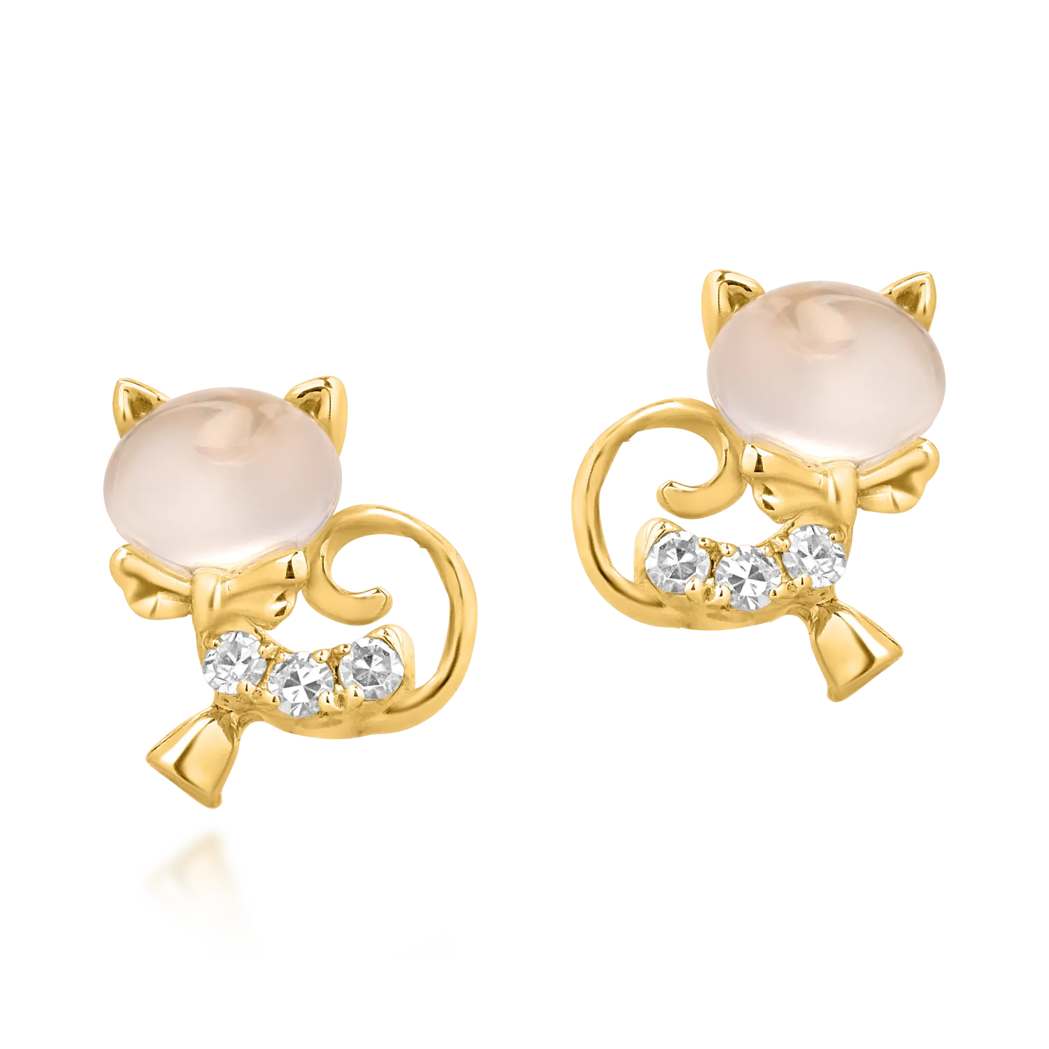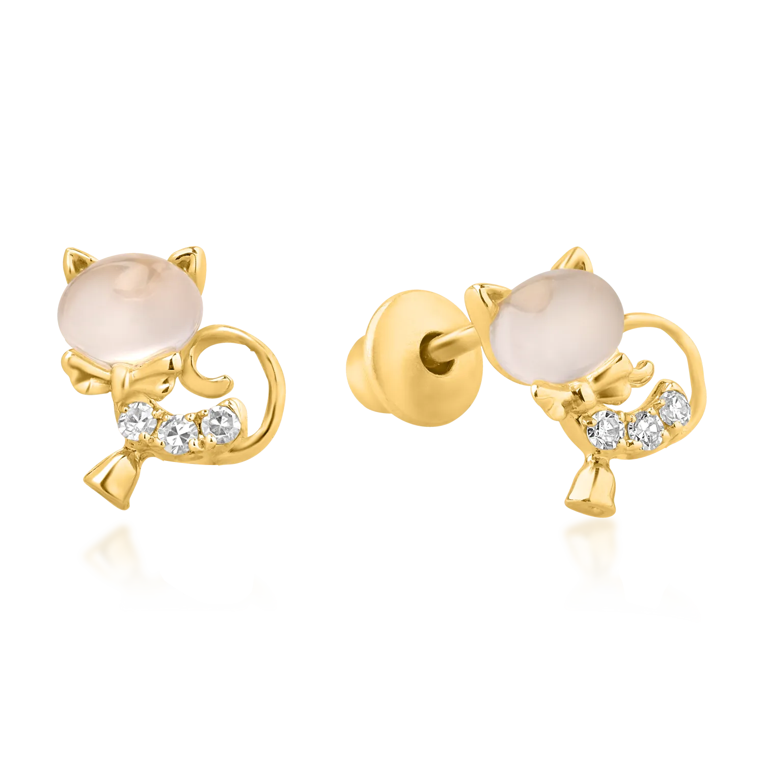 Cercei pisicute din aur galben cu topaze albe ovale de 0.59ct si diamante round de 0.036ct pentru copii