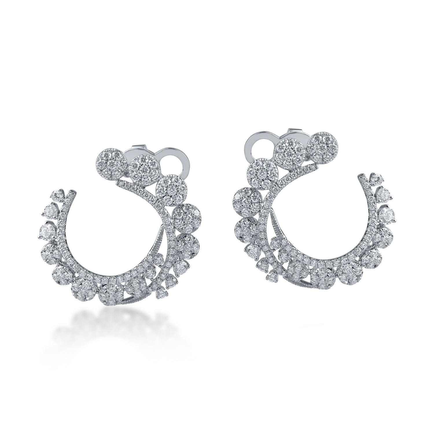 Cercei rotunzi din aur alb cu diamante de 1.7ct