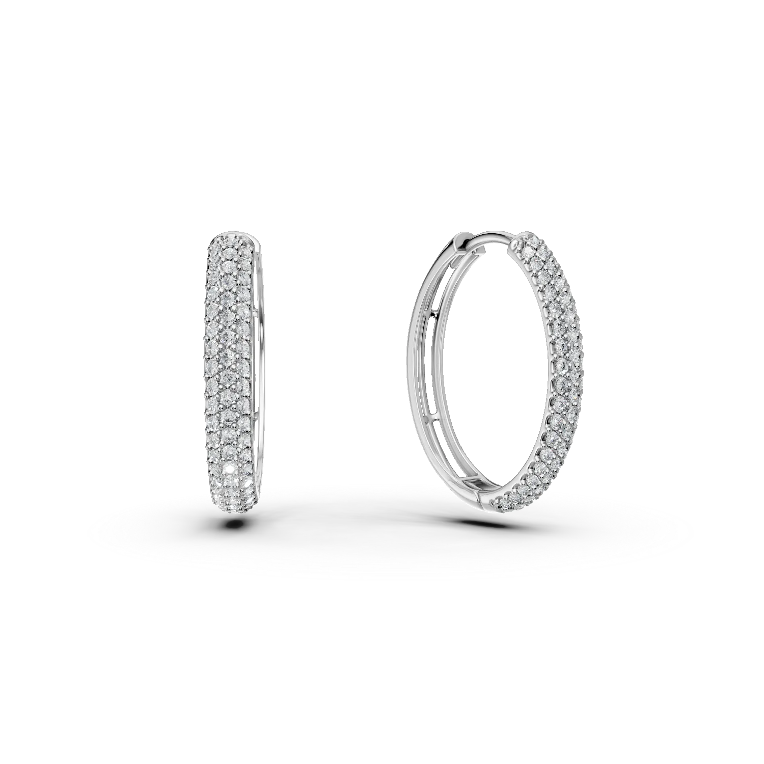 Cercei rotunzi din aur alb cu zirconia microsetting