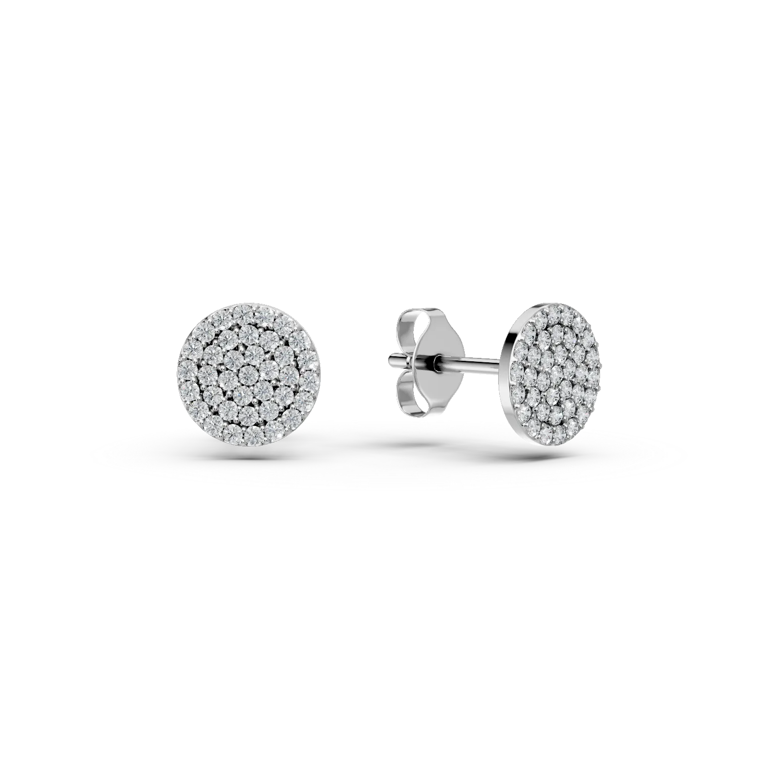 Cercei rotunzi din aur alb cu zirconia microsetting