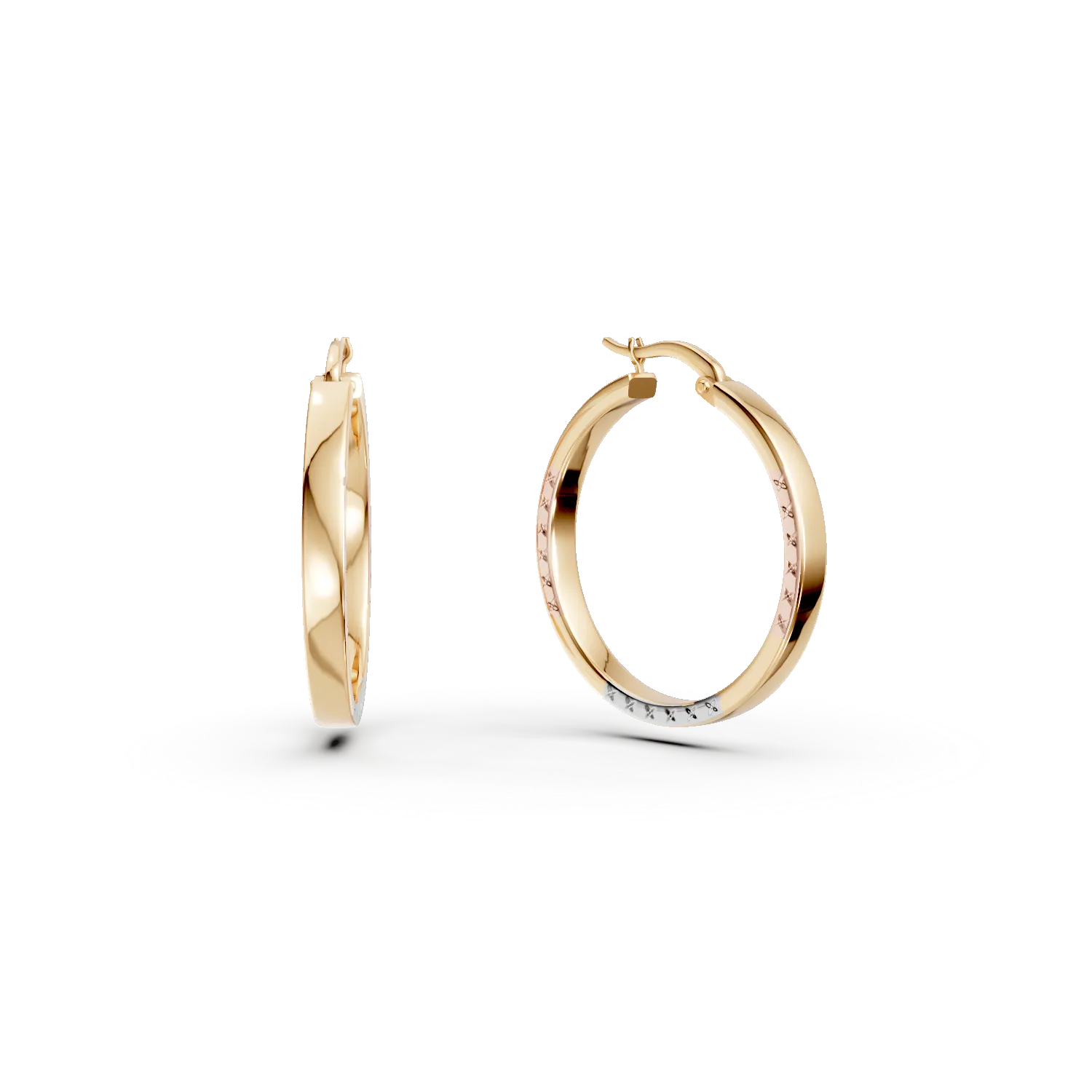 Bijuteria reprezinta alegerea ideala atunci cand doresti sa adaugi o nota proaspata tinutelor tale. Cu un design atemporal, cerceii rotunzi din aur alb-roz-galben sunt accesoriul principal in conturarea unei tinute elegante. Poarta accesoriile care iti evidentiaza latura sofisticata.