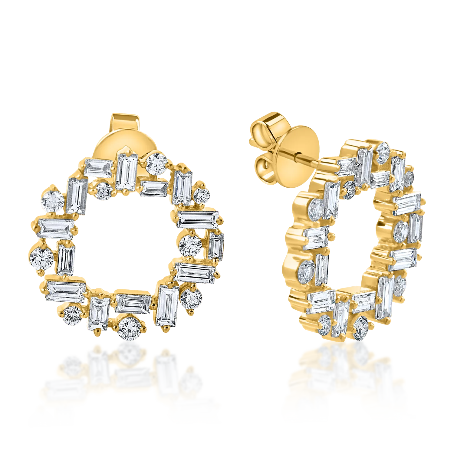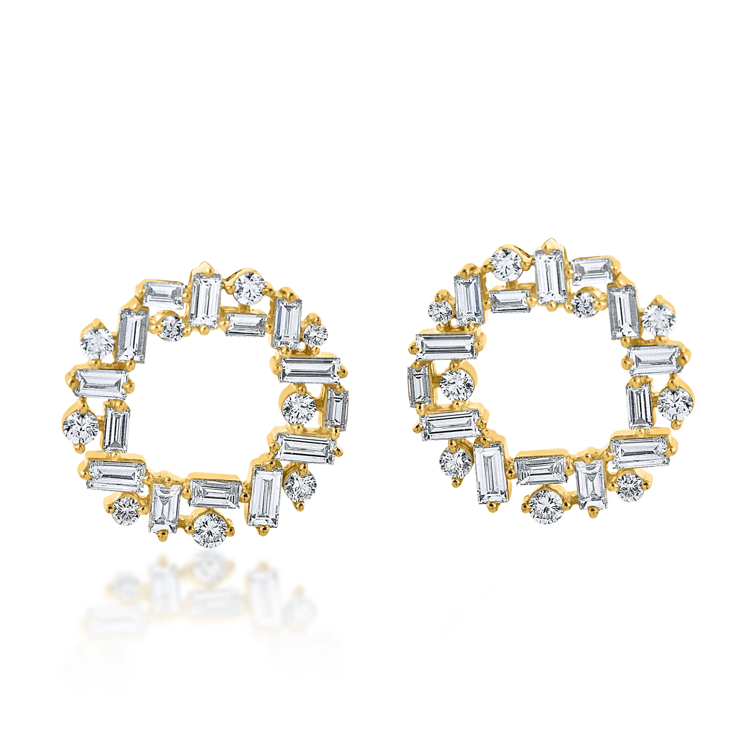 Cercei rotunzi din aur galben cu diamante baguette si rotunde de 1.5ct