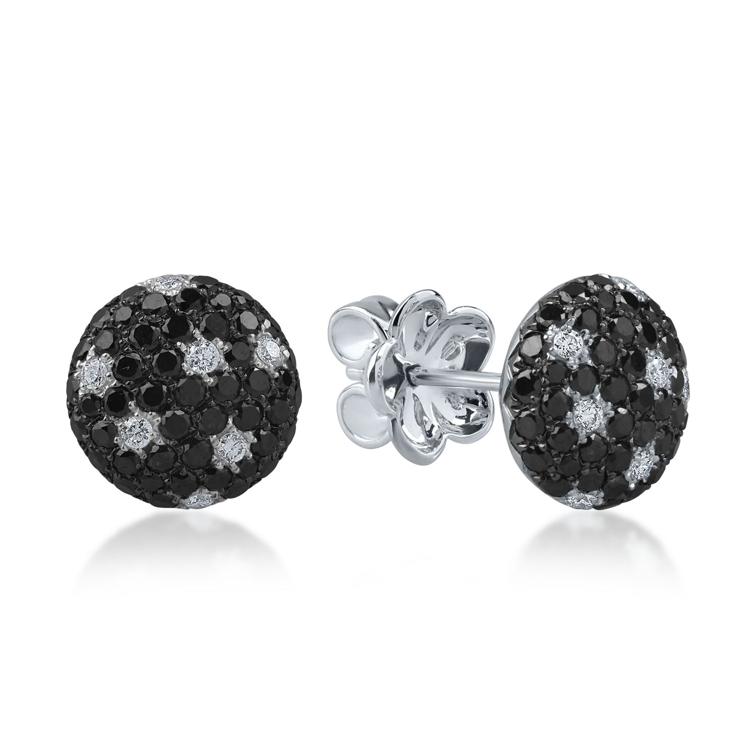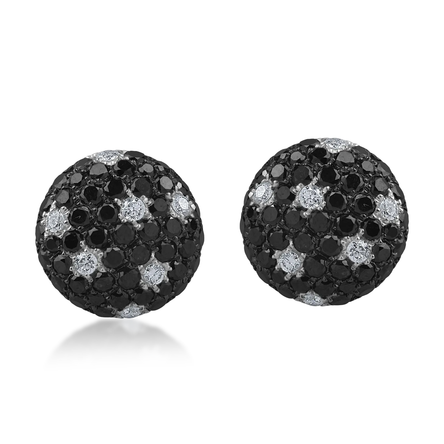 Cercei stud din aur alb cu diamante negre de 1.1ct si diamante incolore de 0.1ct