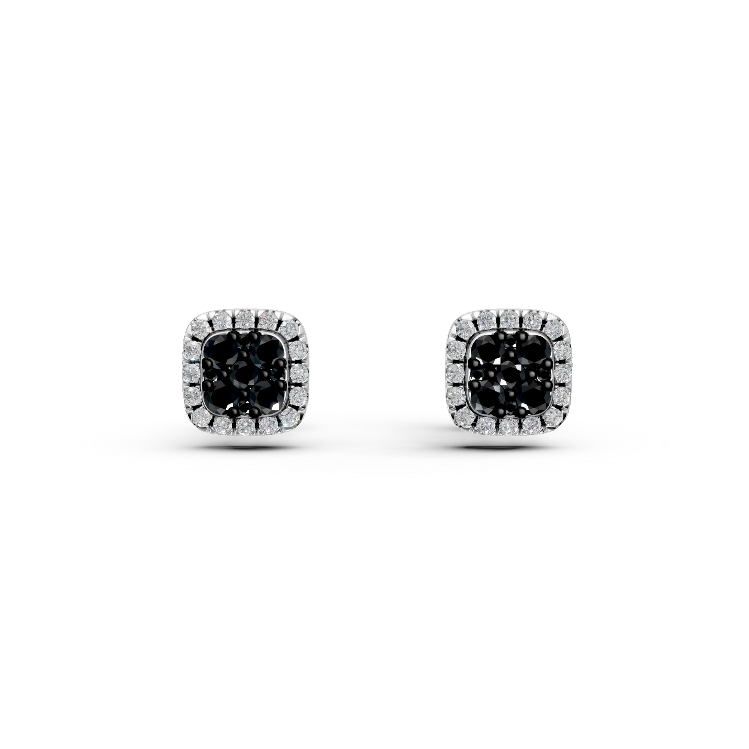 Cercei stud din aur alb cu diamante negre si incolore de 0.3ct