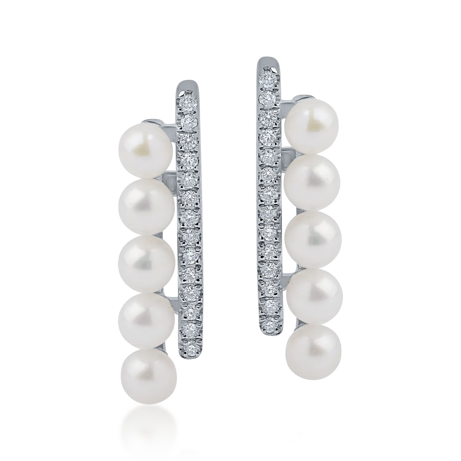 Cercei stud din aur alb cu perle de cultura de 2.01ct si diamante de 0.11ct