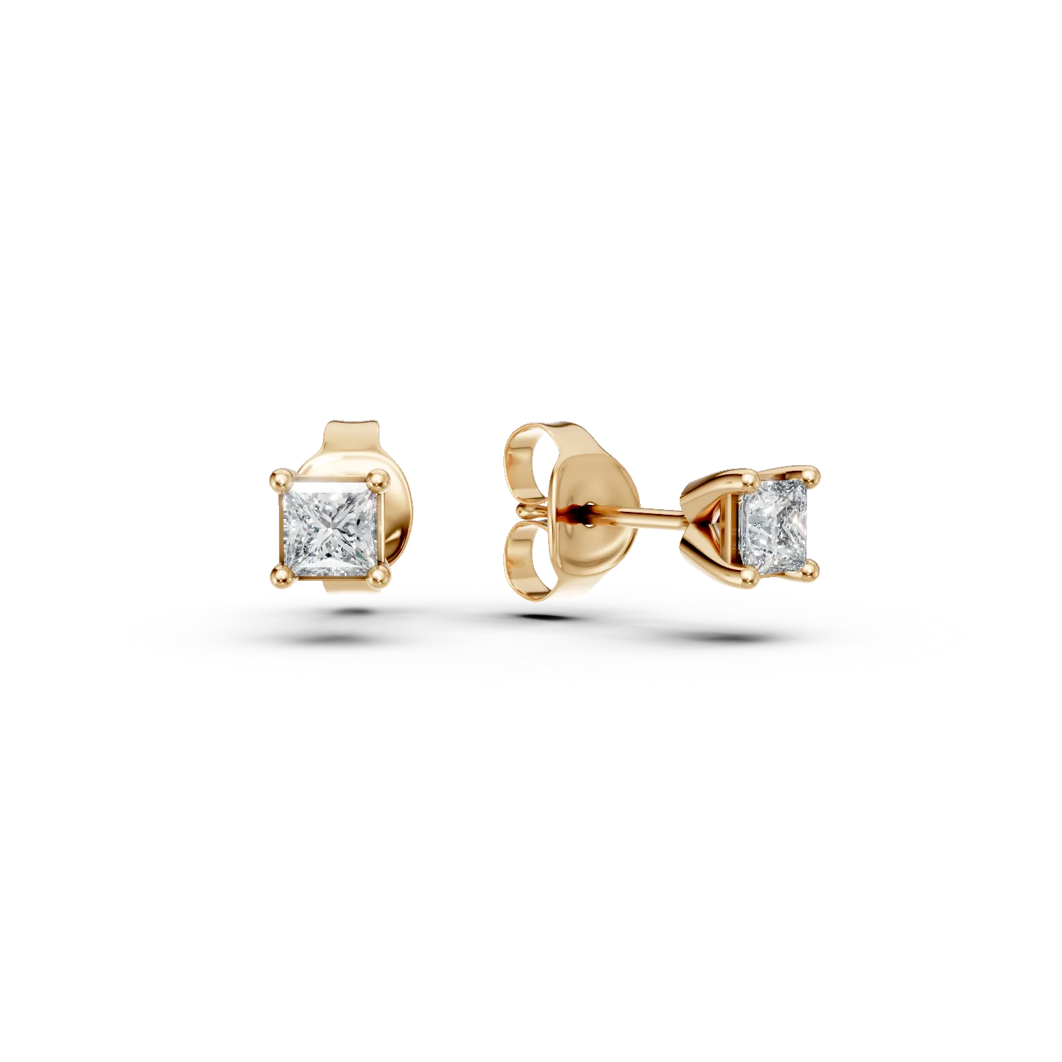 Cercei stud din aur galben cu diamante princess de 0.2ct