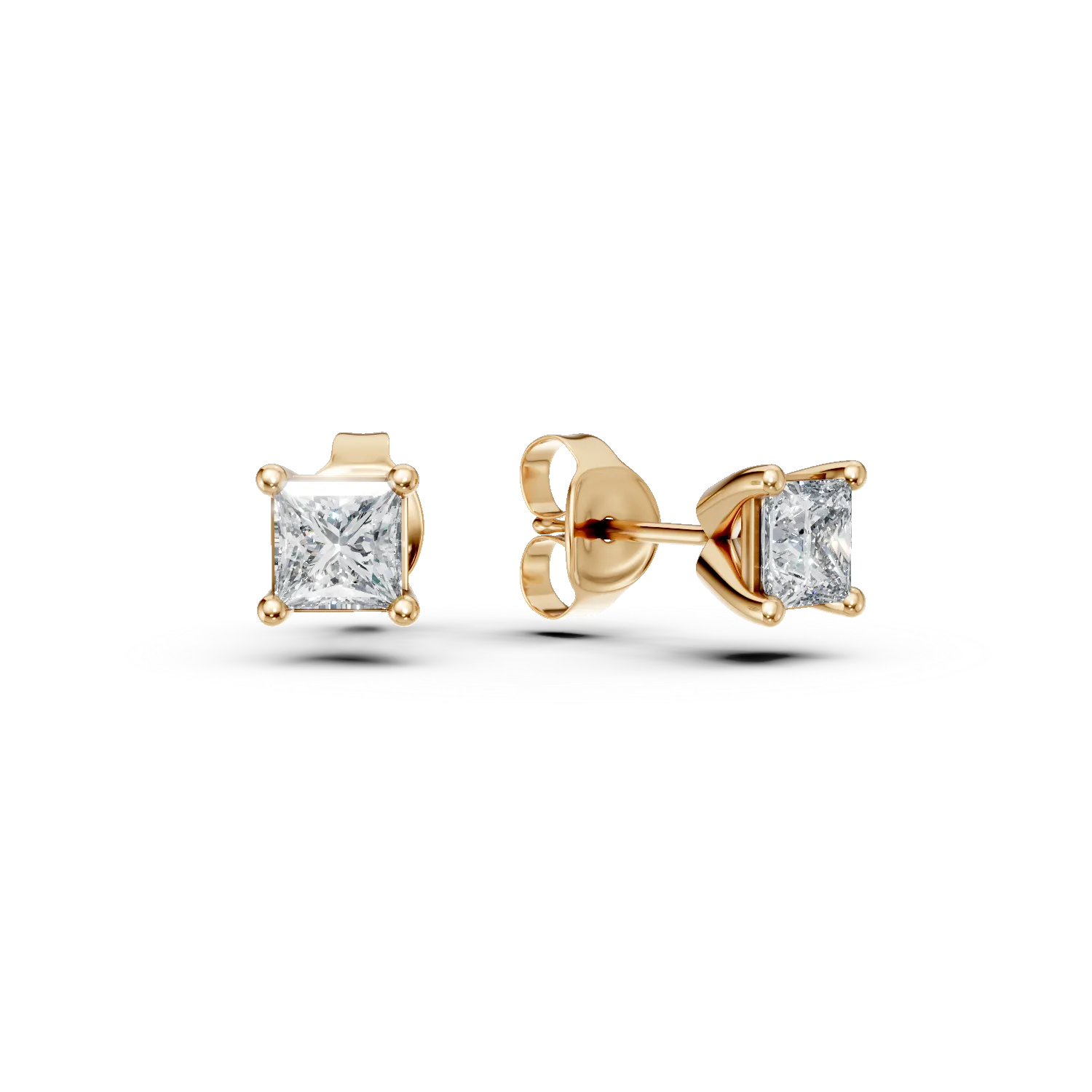 Cercei stud din aur galben cu diamante princess de 0.5ct