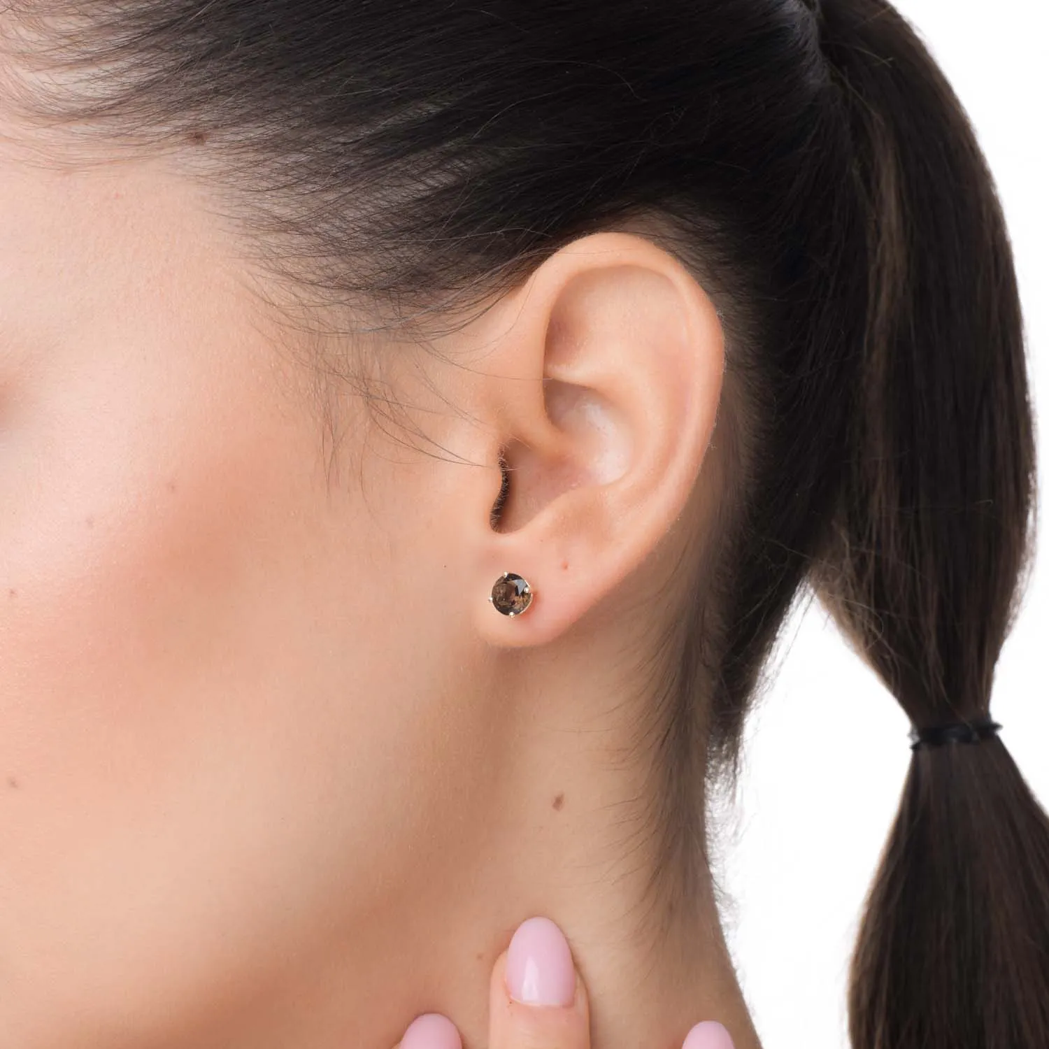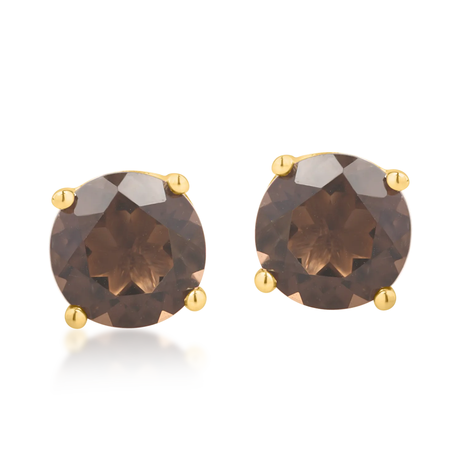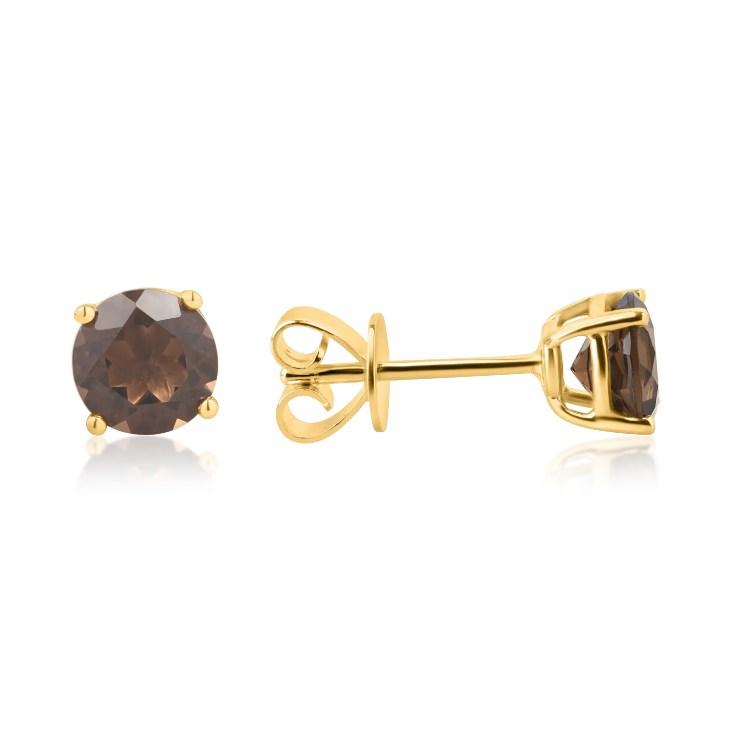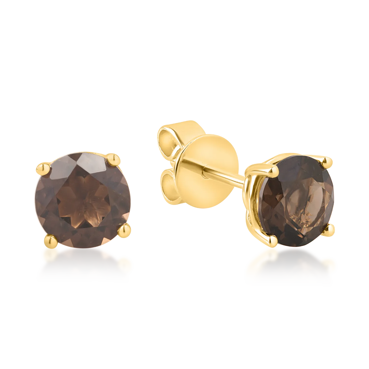 Cercei stud din aur galben cu quartz fumuriu de 1.5ct