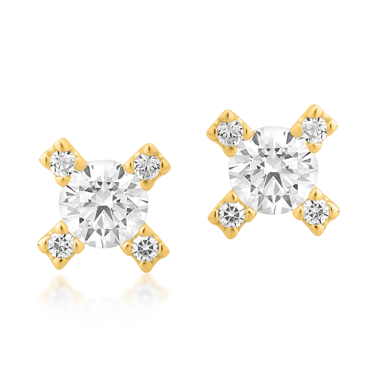 Poarta bijuteriile care iti dau incredere in tine. Autenticitatea designului si rafinamentul cerceilor stud din aur galben cu zirconii dau o nota eleganta oricarui stil. Poarta accesoriile care iti evidentiaza latura sofisticata.