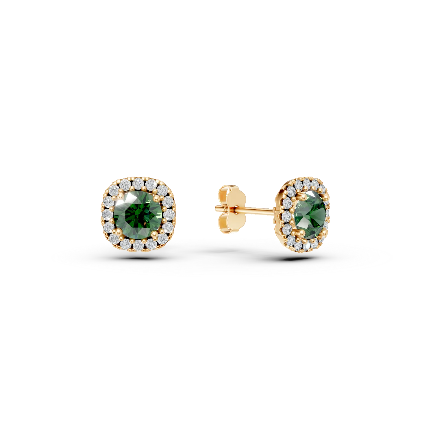 Cercei stud din aur galben cu zirconii verzi