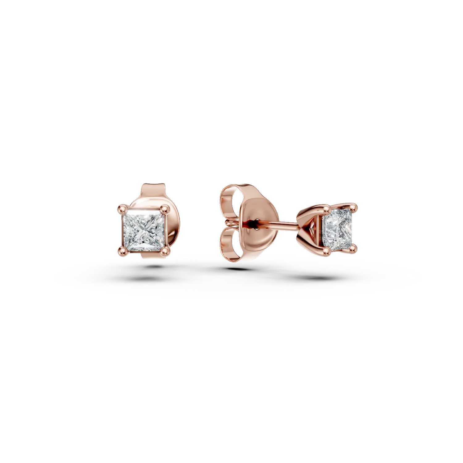 Cercei stud din aur roz cu diamante princess de 0.2ct