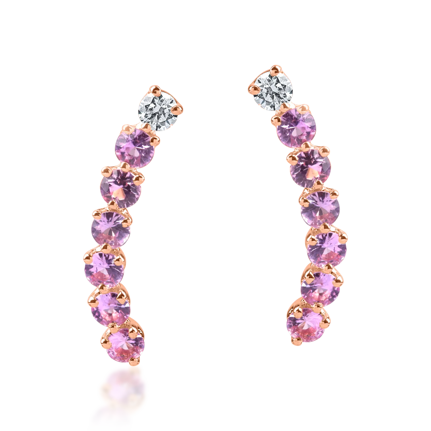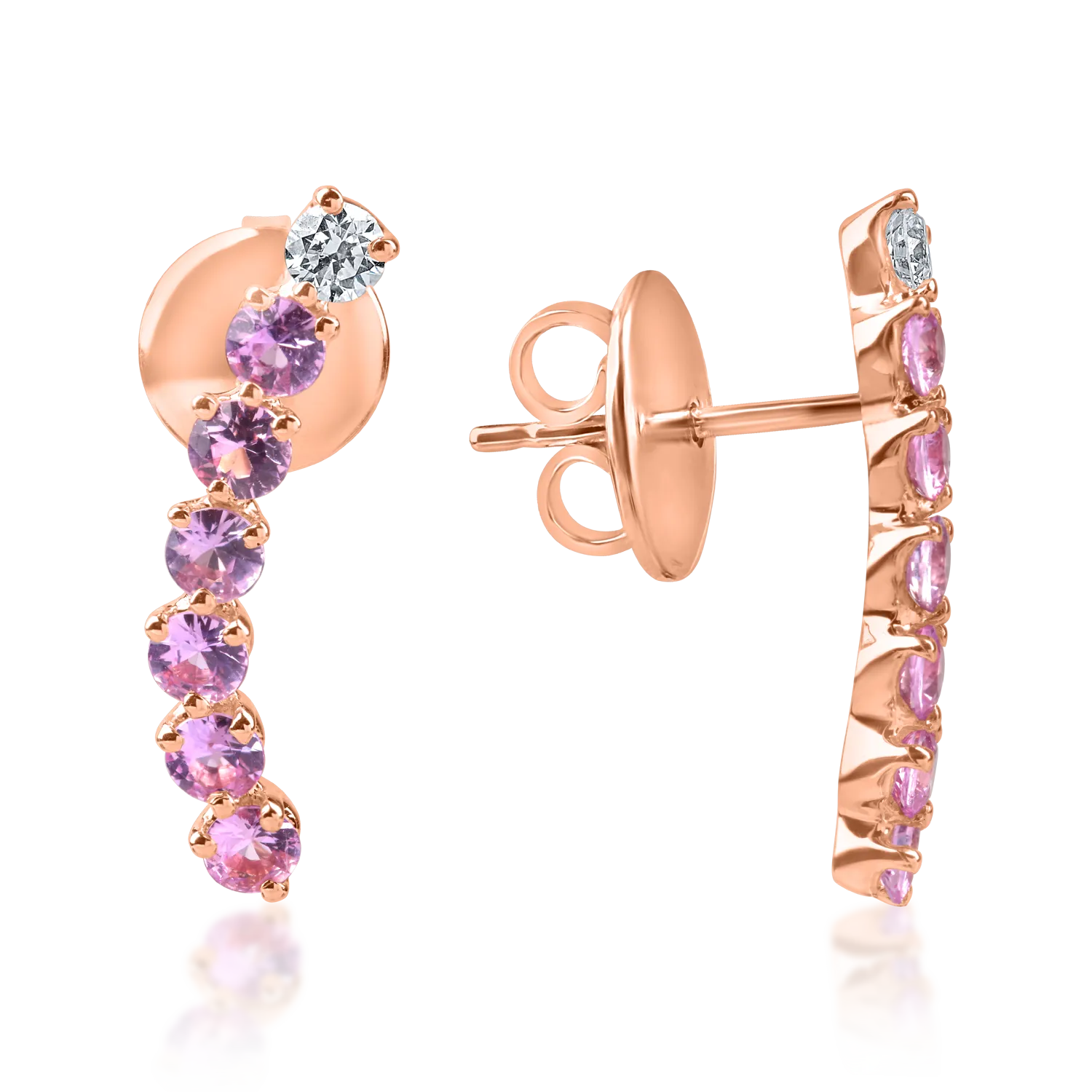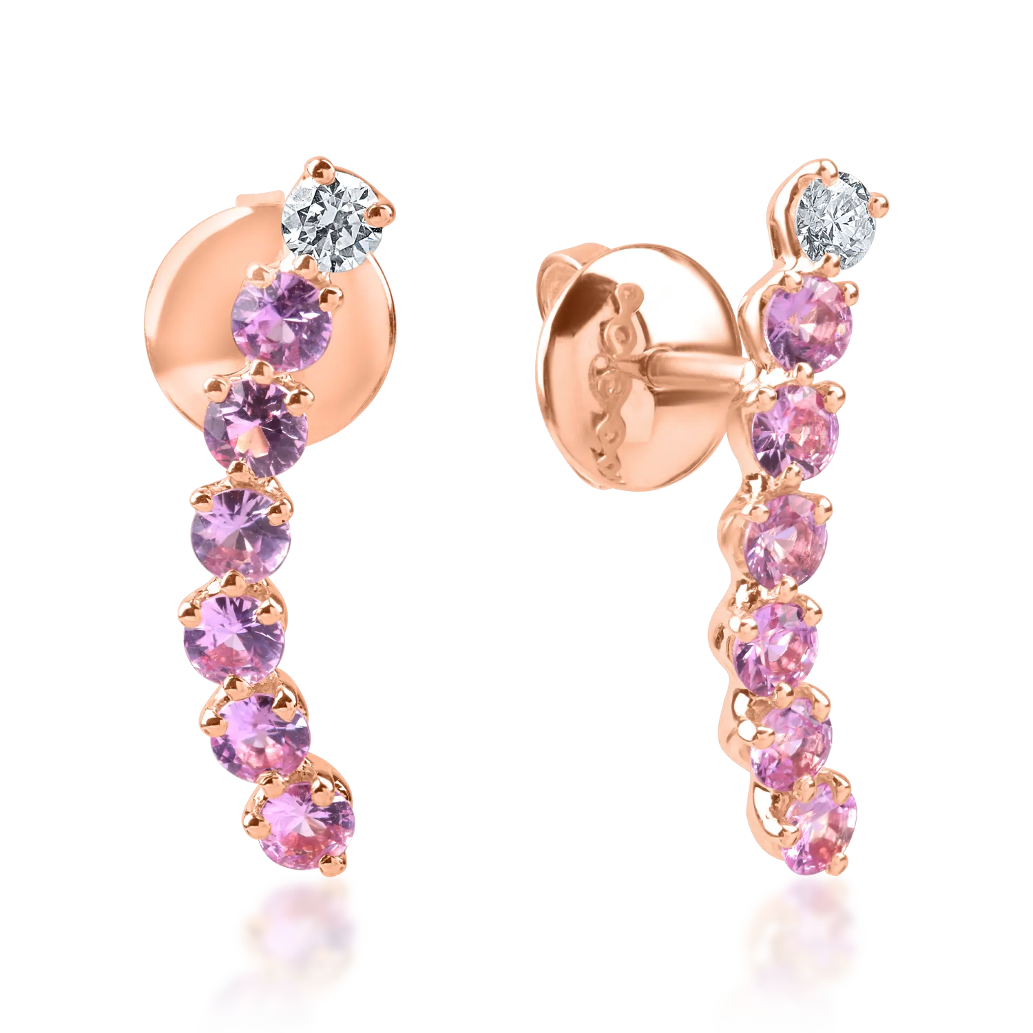 Cercei stud din aur roz cu rubine de 0.9ct si diamante de 0.1ct