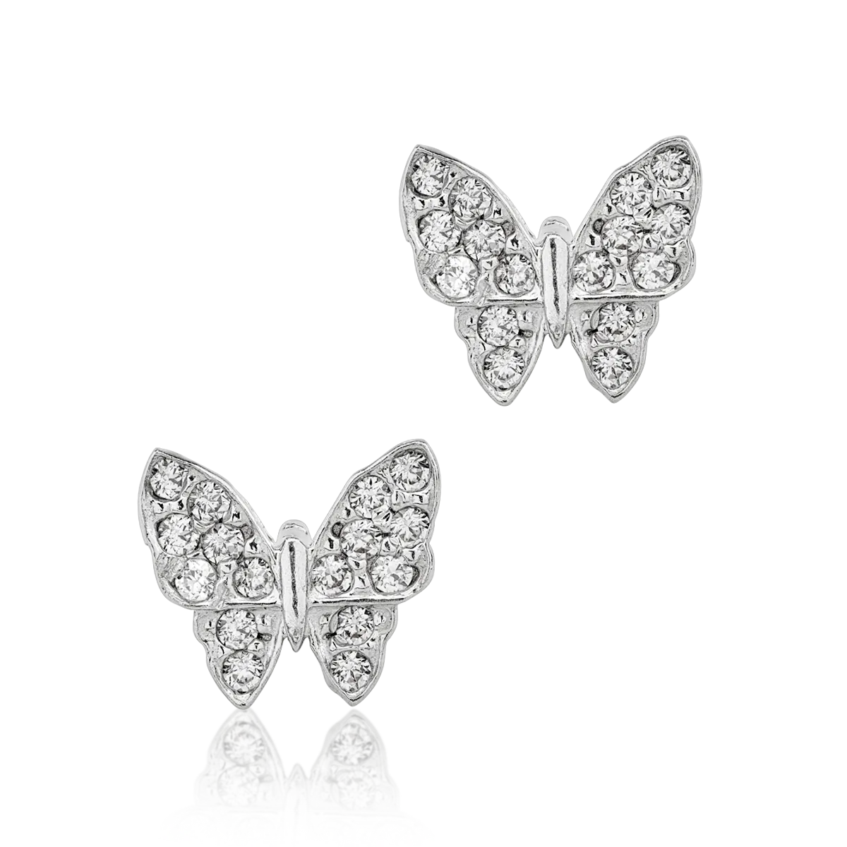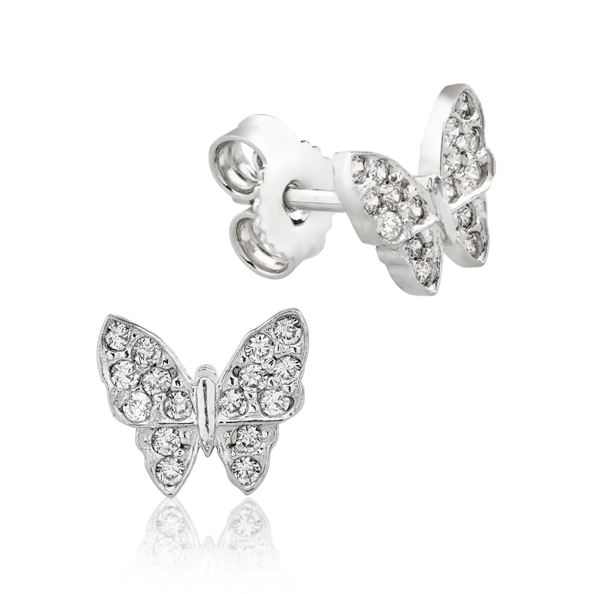 Cercei stud fluturasi din aur alb cu zirconia microsetting