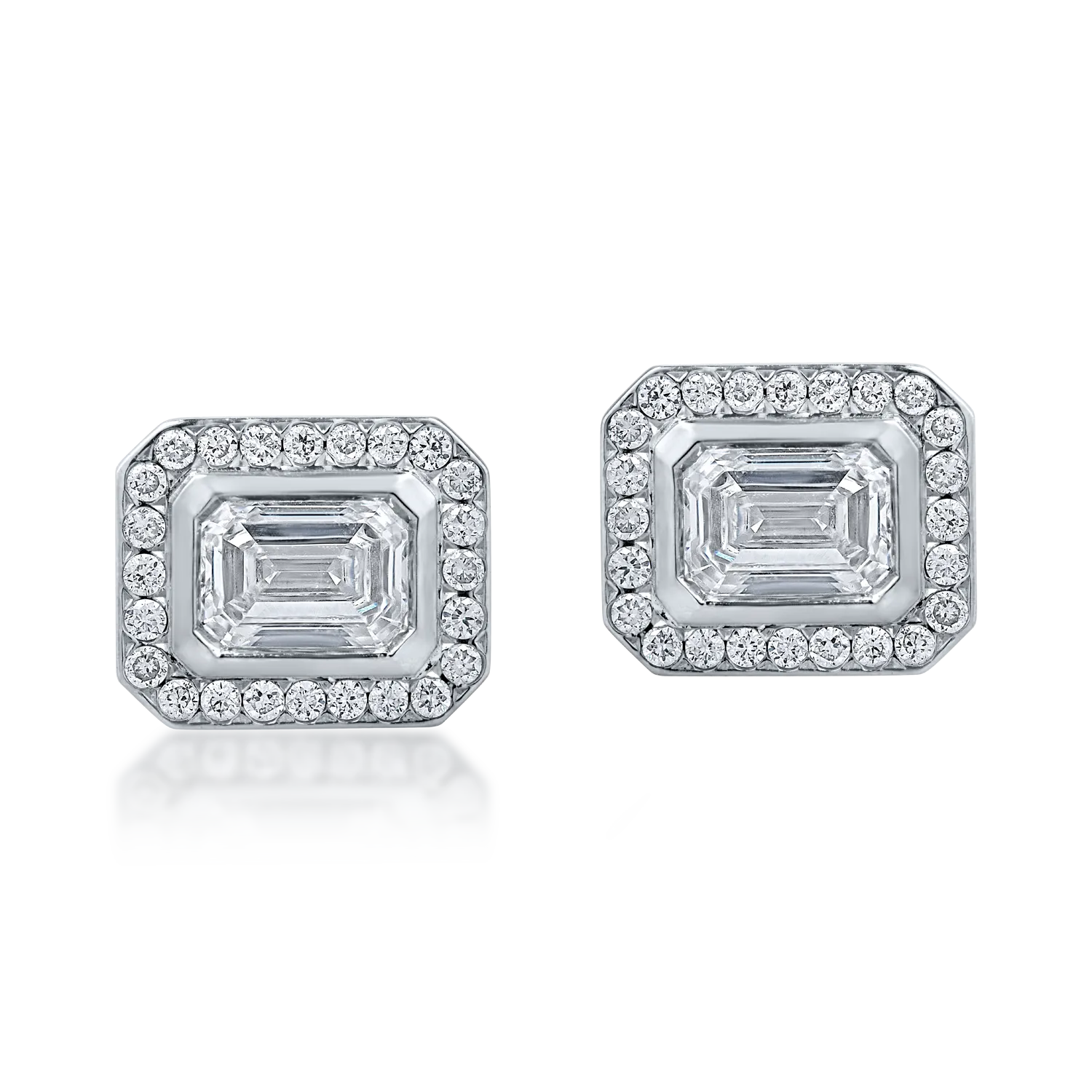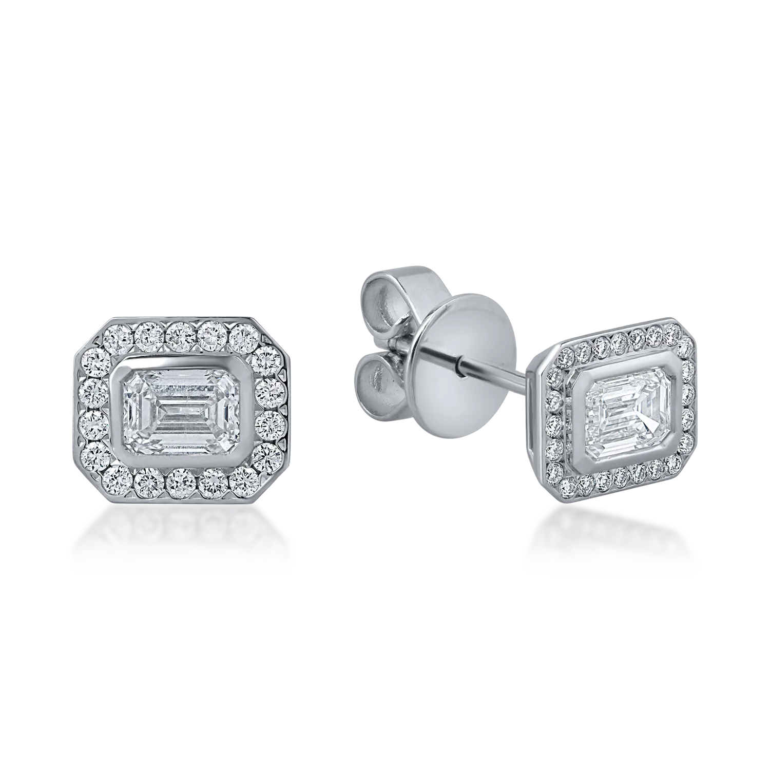 Cercei stud geometrici din aur alb cu diamante emerald si rotunde de 0.7ct