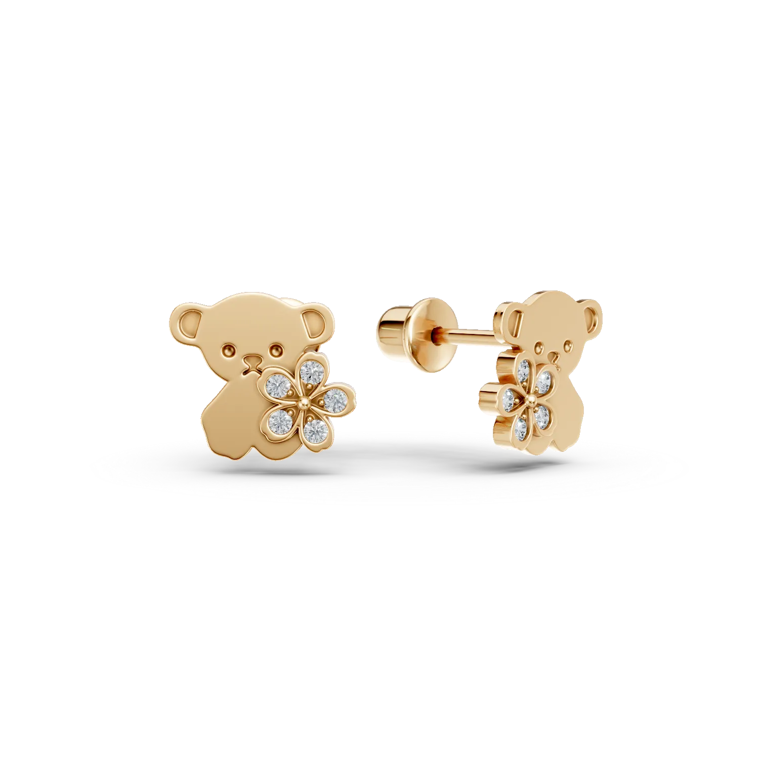 Cercei ursulet din aur galben cu diamante de 0.04ct pentru copii
