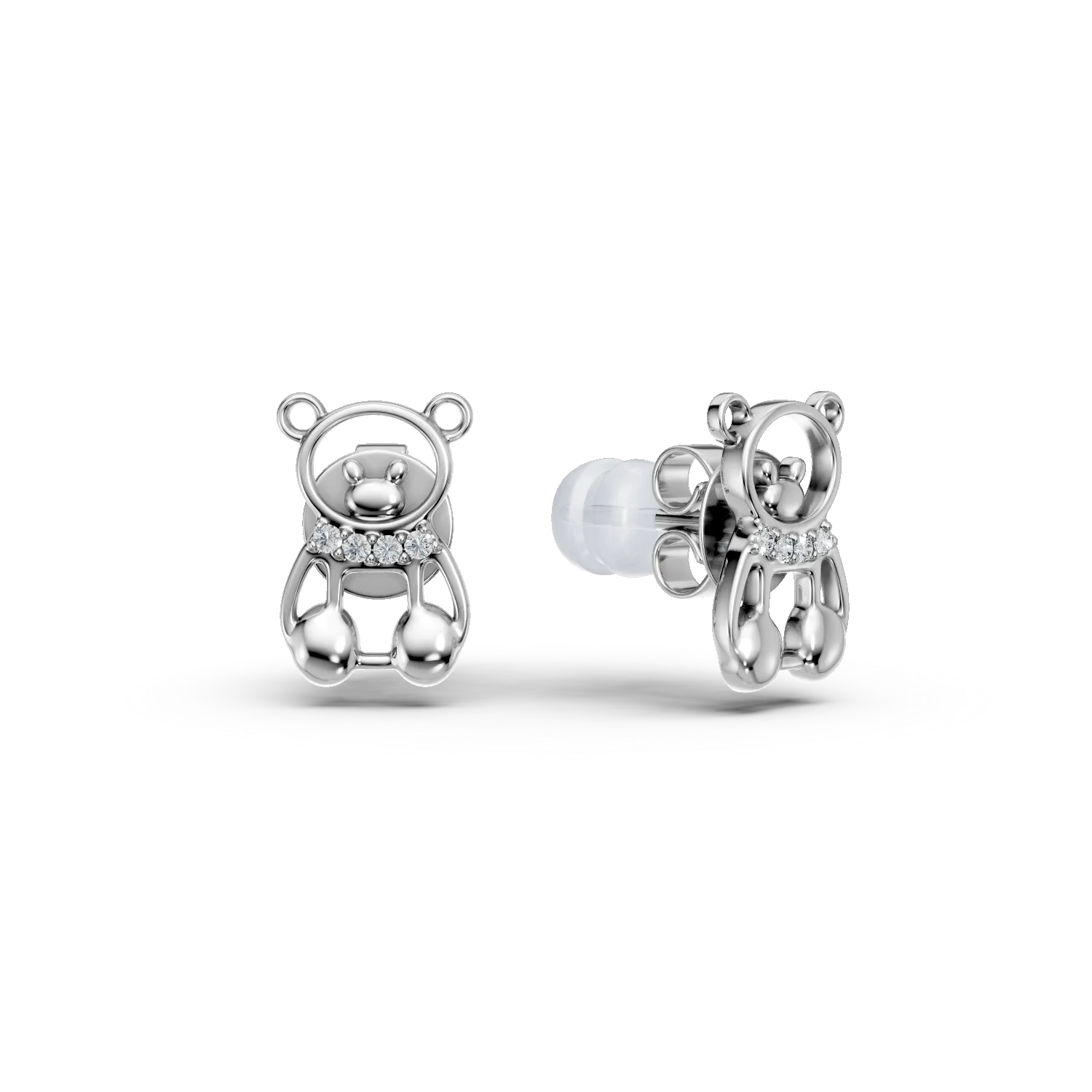 Cercei ursuleti din aur alb cu diamante de 0.2ct pentru copii