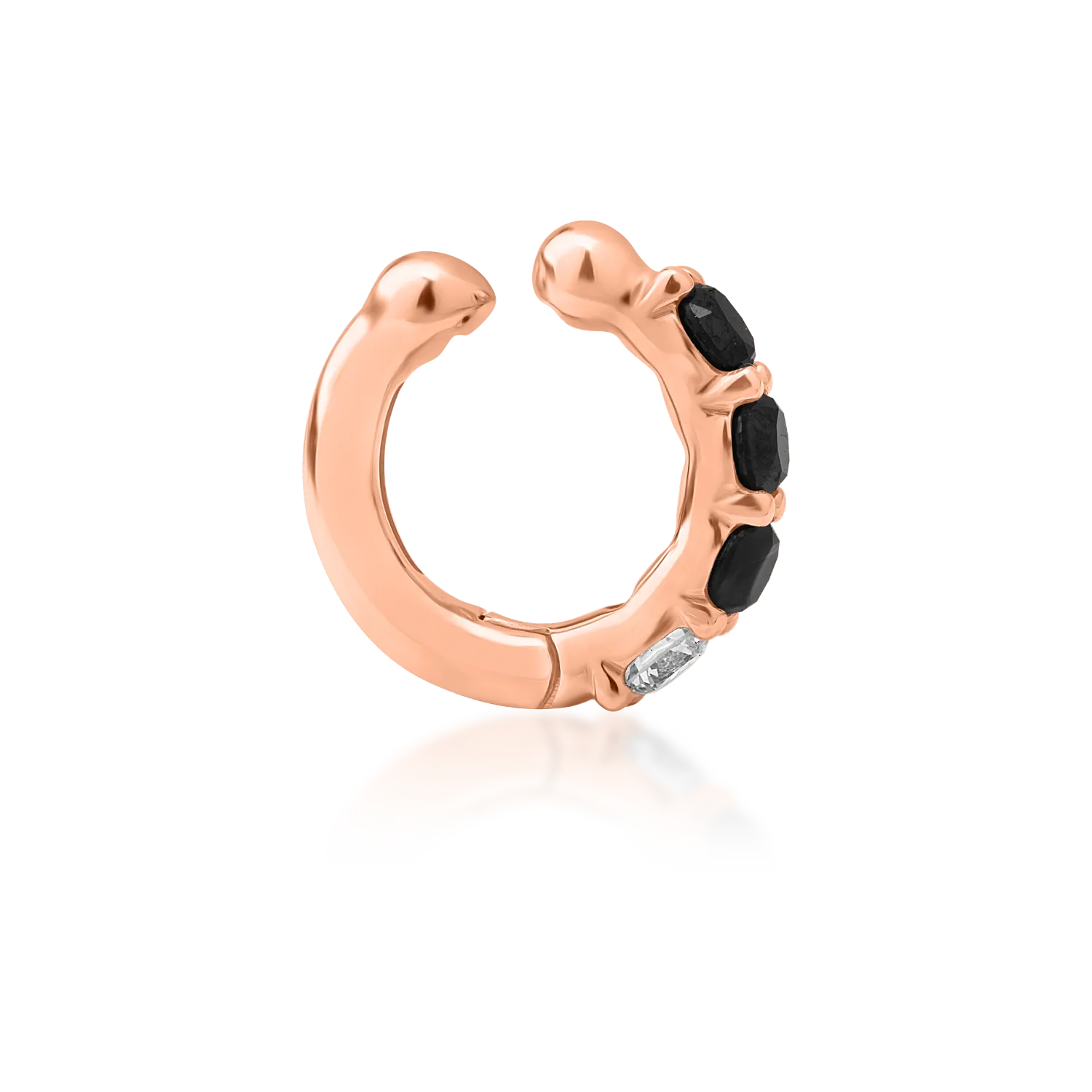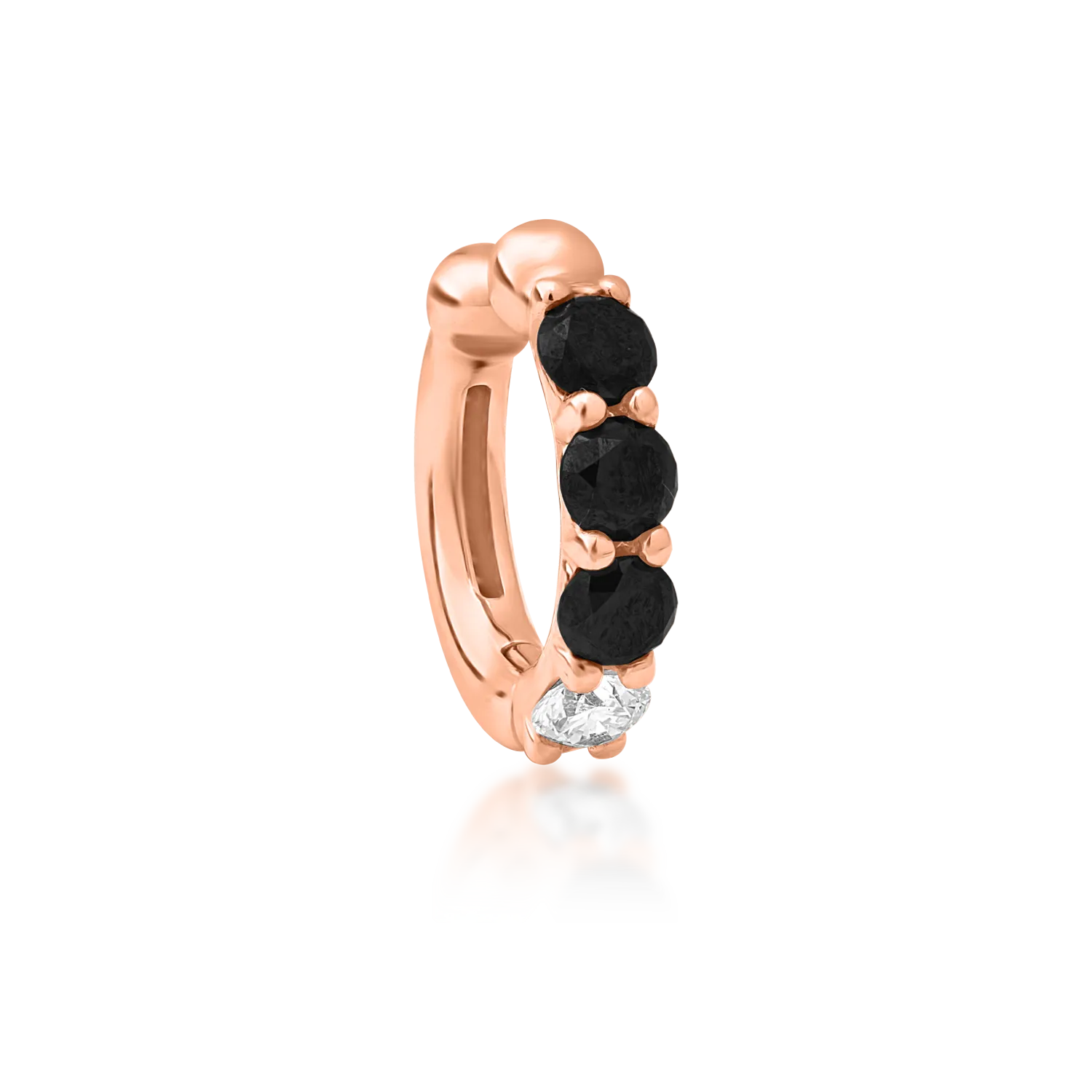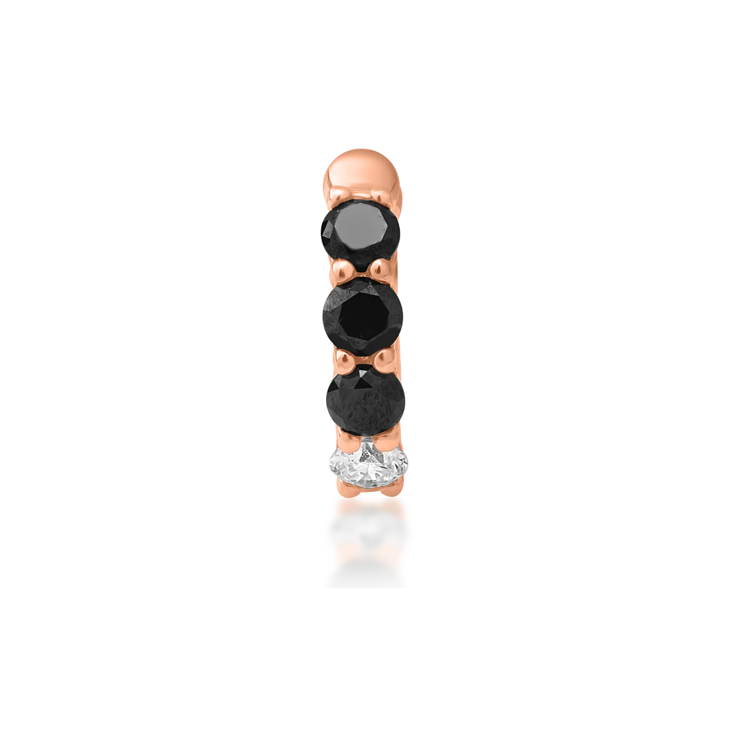 Cercel din aur roz cu diamante negre de 0.38ct si diamant transparent de 0.1ct