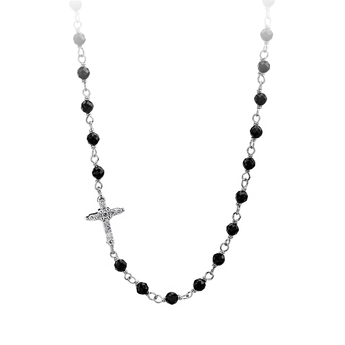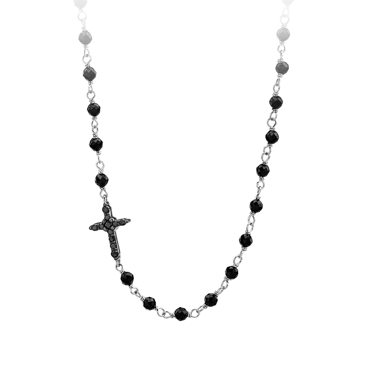 Colier cu cruce din aur alb cu diamante negre de 0.14ct si diamante transparente de 0.13ct