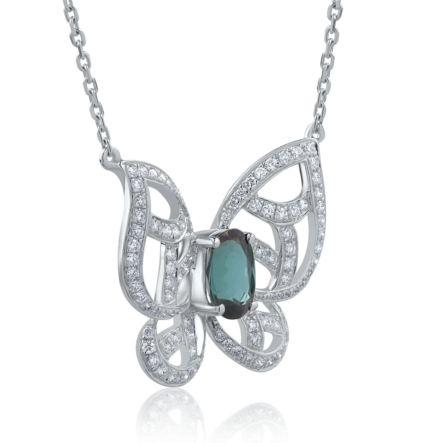 Colier cu fluture din aur alb cu turmalina verde ovala de 1.12ct si diamante de 0.54ct