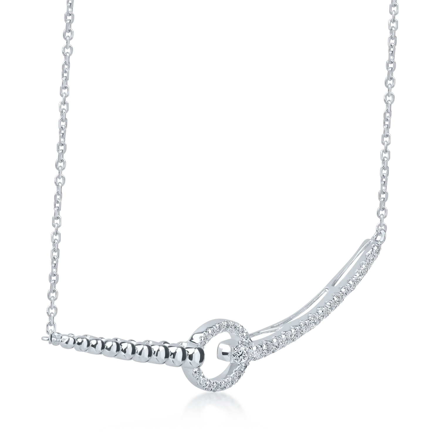 Incearca ceva nou, opteaza pentru o bijuterie de efect. Un simbol al femeii moderne, colierul din aur alb cu diamante de 0.2ct impresioneaza prin rafinamentul sau subtil. Finisajul neted al aurului si montura precisa a pietrelor creeaza o armonie perfecta intre simplitate si stralucire. Este o piesa usor de purtat, dar imposibil de trecut cu vederea – un detaliu care vorbeste despre stilul tau autentic. Impartaseste emotii cu TEILOR!