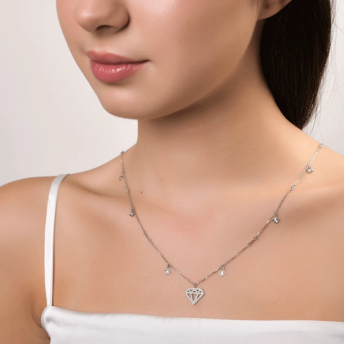 Gratie si frumusete – toate aceste elemente vorbesc despre tine. Colierul din aur alb cu diamante de 0.66ct aduce in prim-plan o stralucire sofisticata, completata de eleganta subtila a designului sau. Reflexiile fine ale diamantelor prind viata la fiecare miscare, punand in valoare feminitatea ta naturala. O bijuterie creata pentru femeia care apreciaza detaliile impecabile si armonia dintre modern si clasic. Poate fi purtata atat ziua, cat si seara, fiind acel detaliu care adauga rafinament oricarei tinute. Redescopera-ti energia debordanta cu bijuteriile TEILOR!