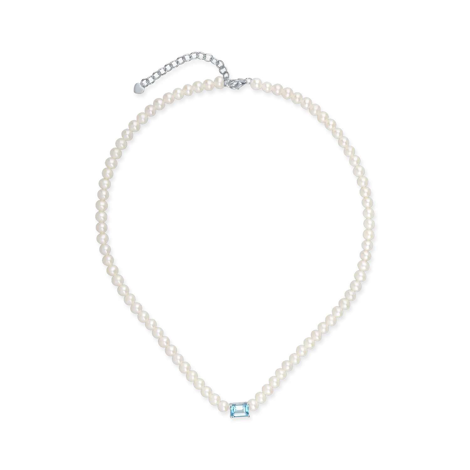 Colier din aur alb cu perle de cultura de 45.5ct si topaz albastru octogonal de 1.2ct