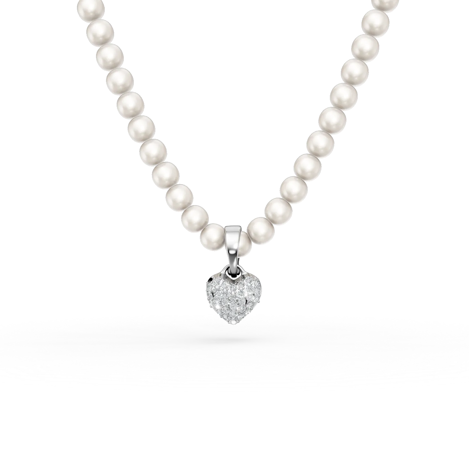 Colier din aur alb cu perle de cultura de 45ct si diamante de 0.1ct