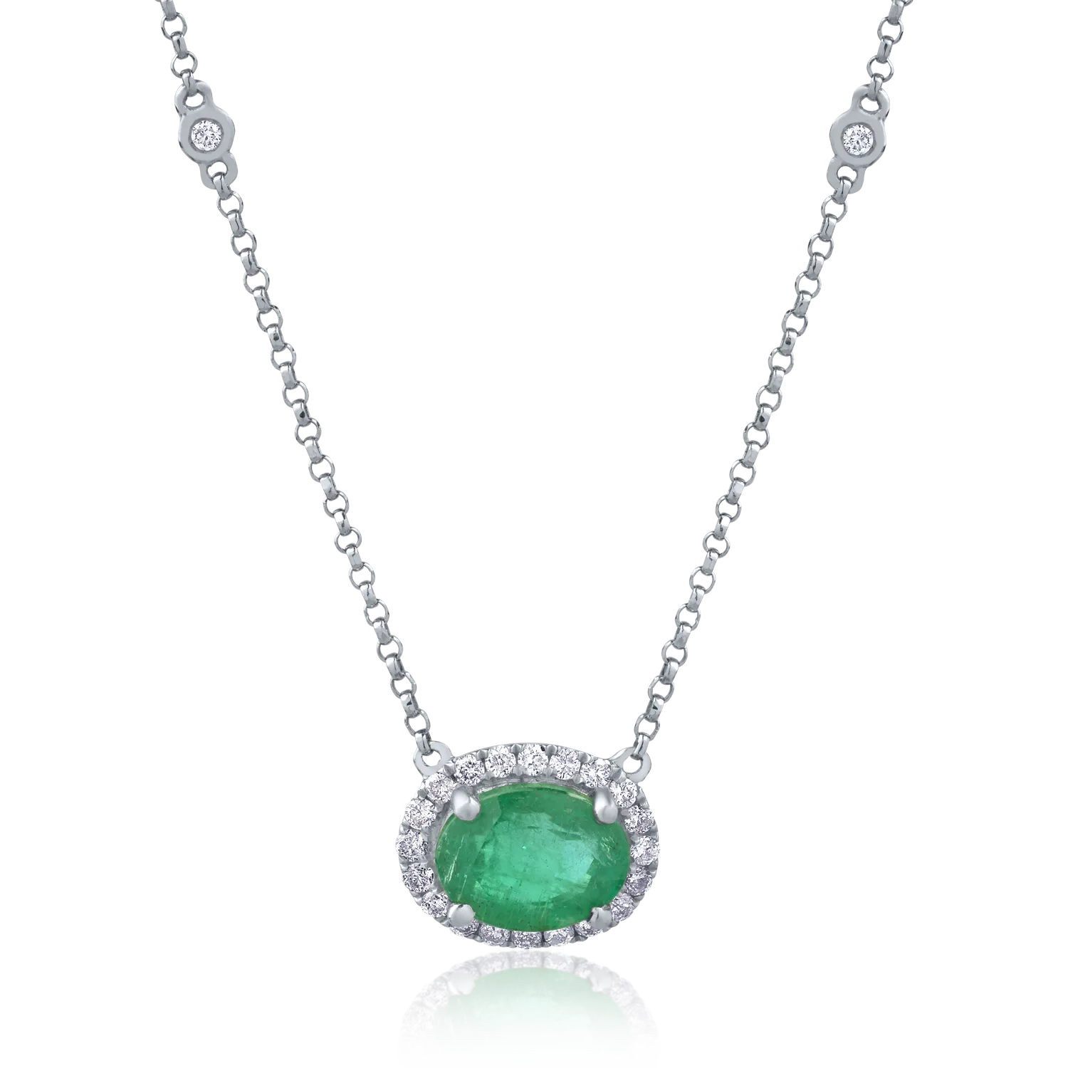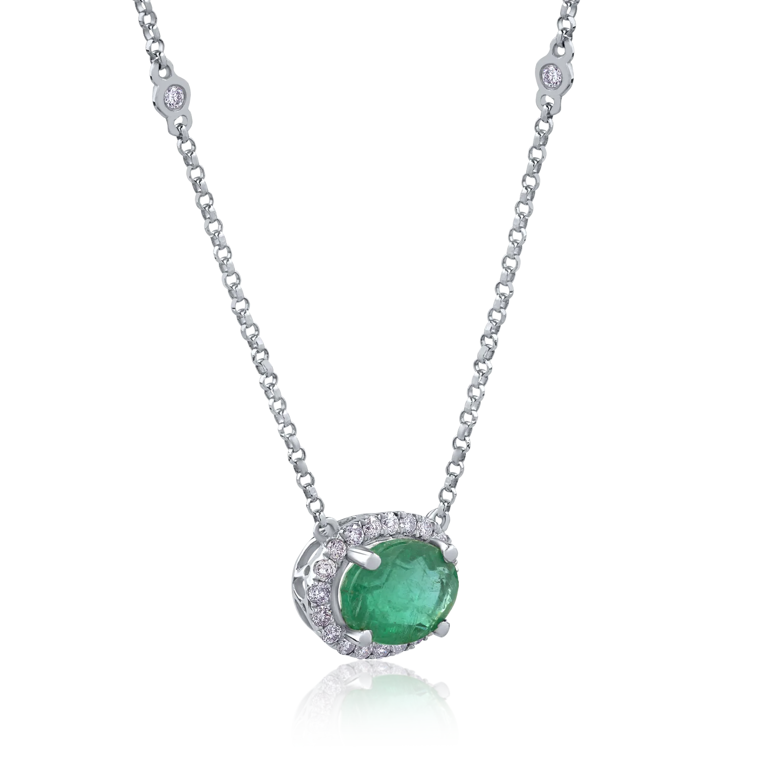 Colier din aur alb cu smarald oval de 1.2ct si diamante de 0.2ct