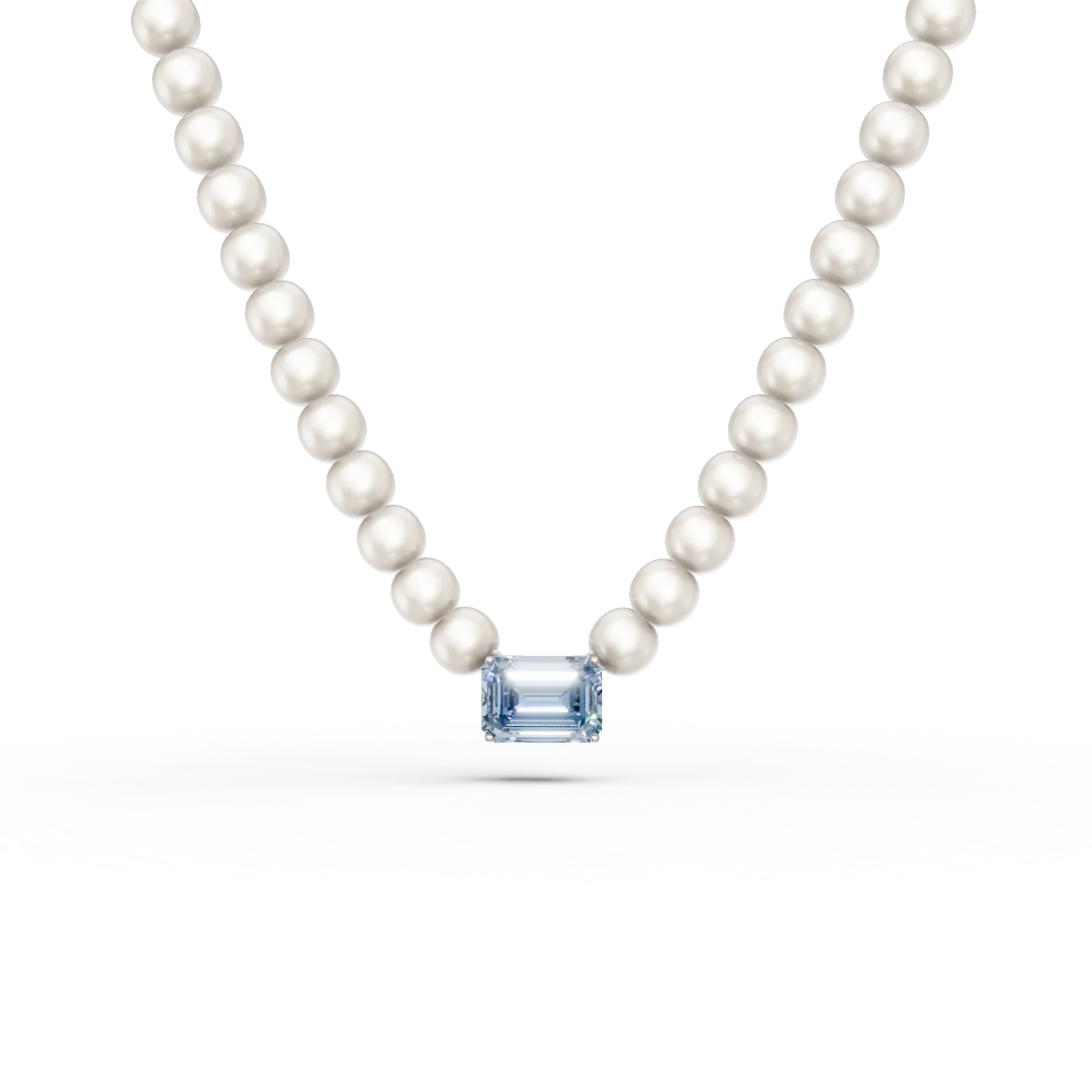 Colier din aur alb cu topaz albastru octogonal de 1.4ct si perle de cultura
