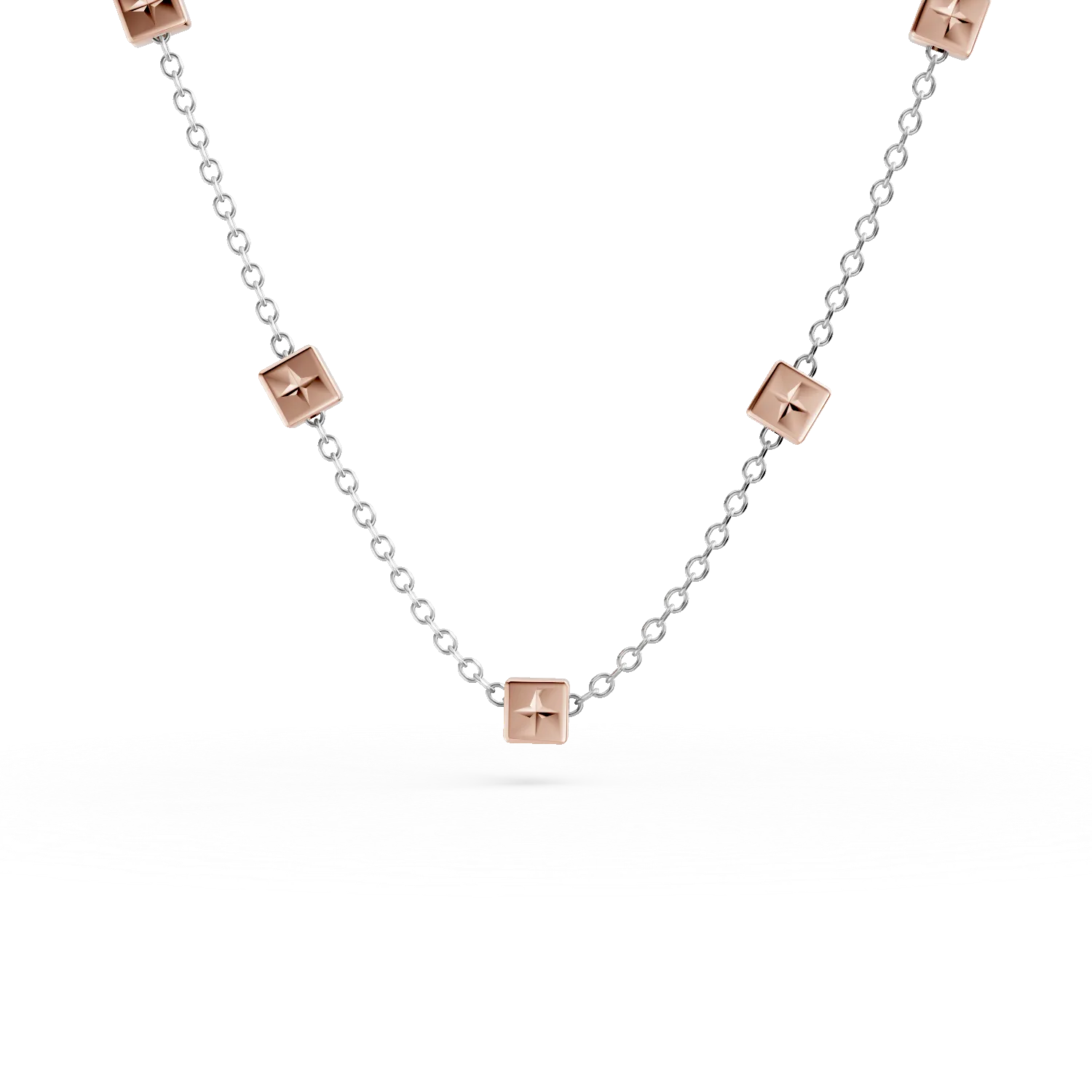 Colier din aur alb-roz cu insertii geometrice