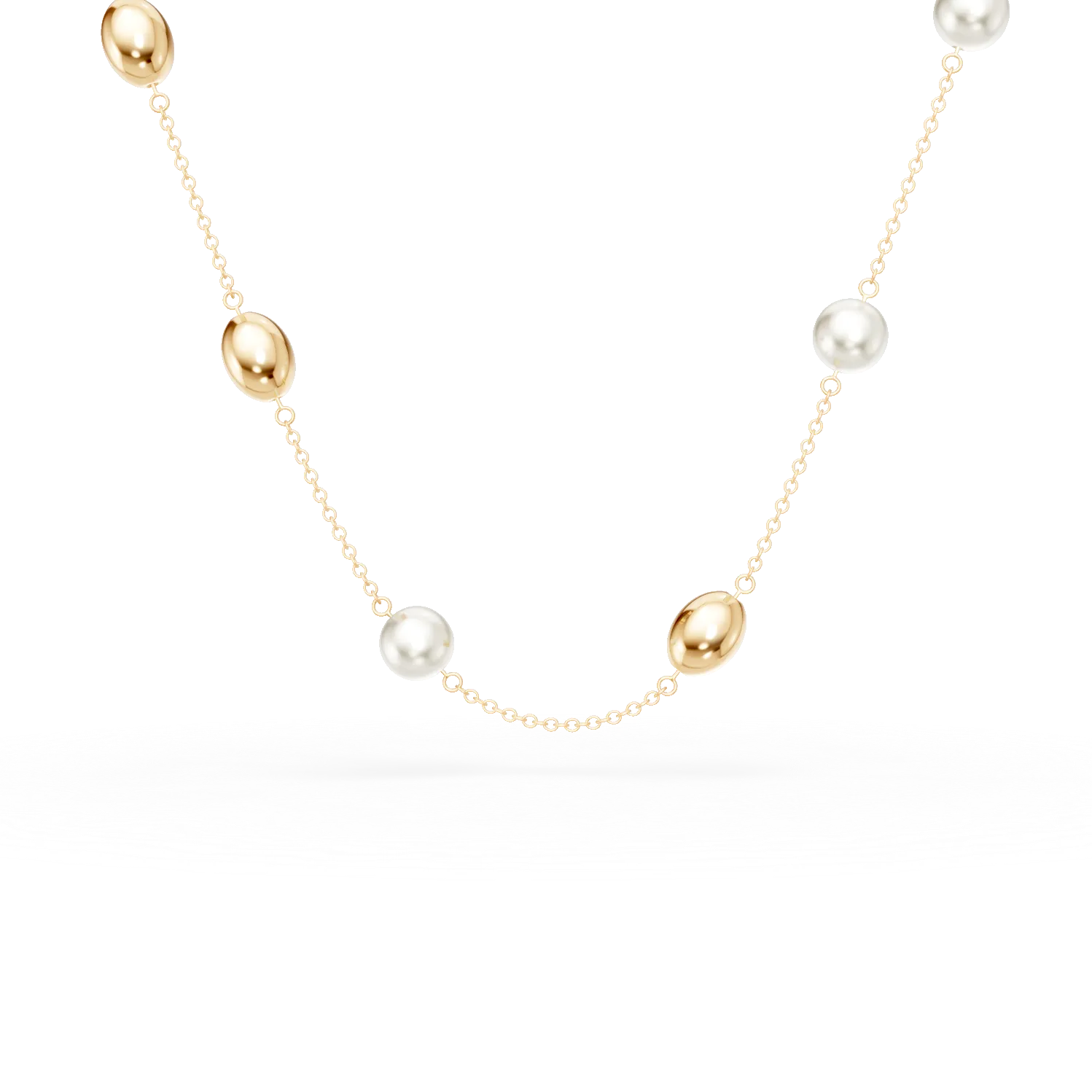 Fii fermecatoare fara prea mult efort. Colierul din aur galben cu perle de cultura de 5ct este definit de rafinament si simplitate. Stralucirea delicata a perlelor se imbina perfect cu tonul cald al aurului, rezultand o bijuterie clasica si moderna in acelasi timp. Fiecare detaliu transmite naturalete, gratie si eleganta. O piesa care iti completeaza cu stil colectia si adauga un plus de luminozitate oricarei tinute. Poarta bijuterii iconice cu TEILOR!