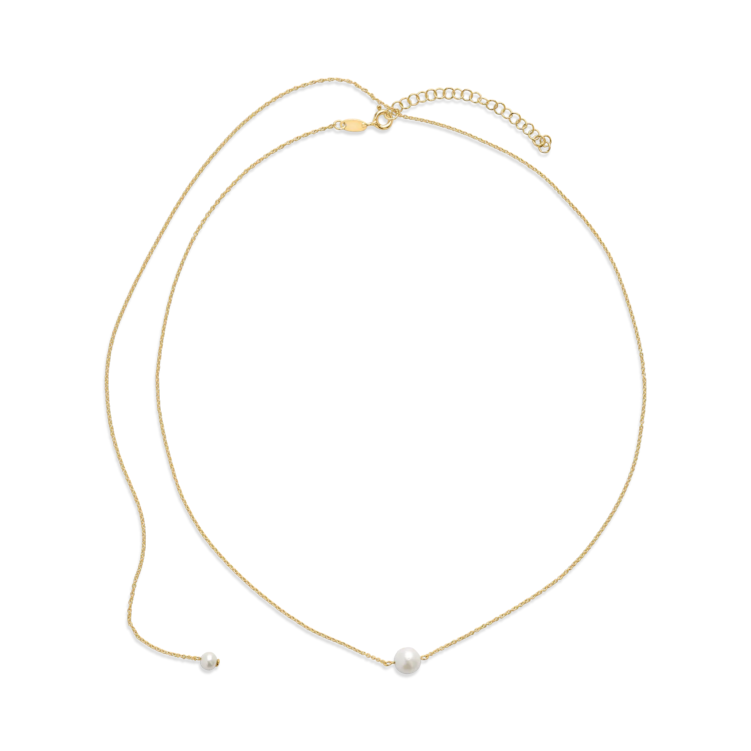 Colier din aur galben cu perle naturale si extensie pentru spate