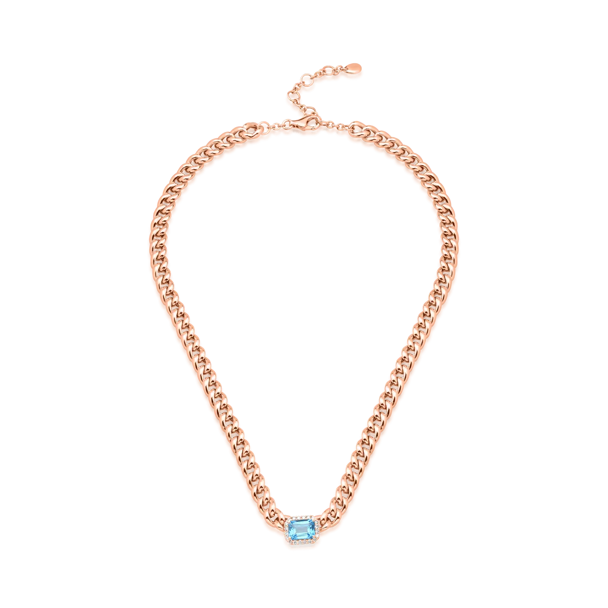 Colier din aur roz cu topaz albastru emerald de 1.92ct si diamante de 0.21ct