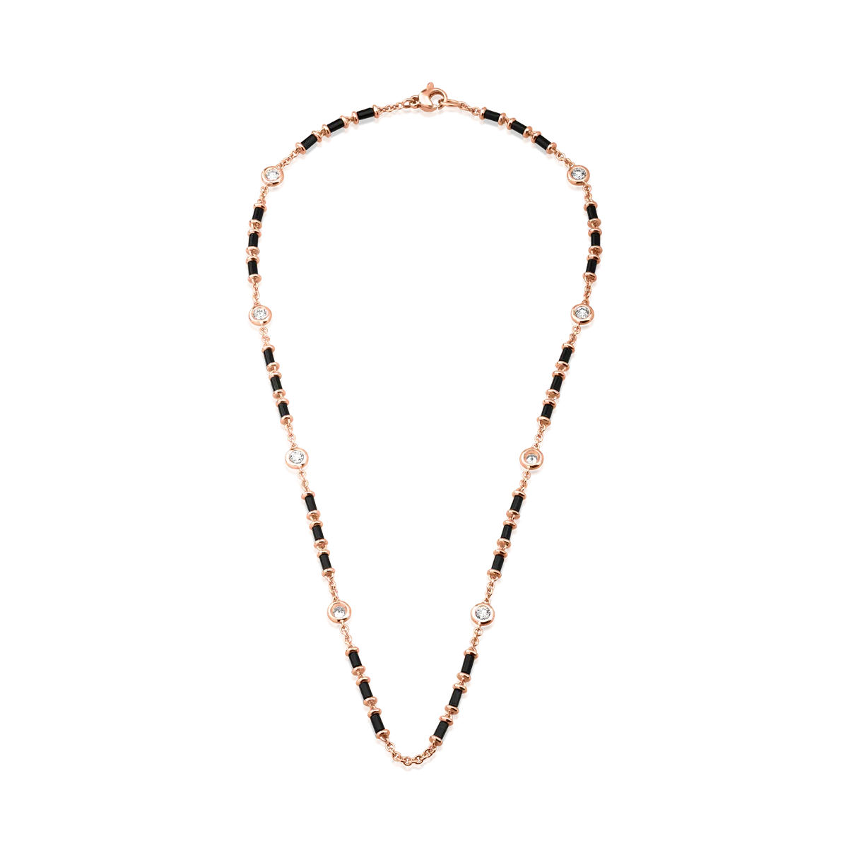 O tinuta eleganta si un mod de a o accesoriza ce intoarce privirile. Colierul din aur roz cu onix de 6.5ct si diamante de 1.42ct este o declaratie de forta si rafinament. Contrastul dintre negrul profund al onixului si lumina diamantelor creeaza o compozitie vizuala sofisticata. Aceasta bijuterie impresioneaza prin echilibrul dintre modernitate si eleganta clasica, fiind creata pentru femeile cu personalitate puternica. Poarta-l la evenimentele in care vrei sa stralucesti, pentru ca fiecare detaliu al sau spune o poveste. Redescopera-ti energia debordanta cu bijuteriile TEILOR!