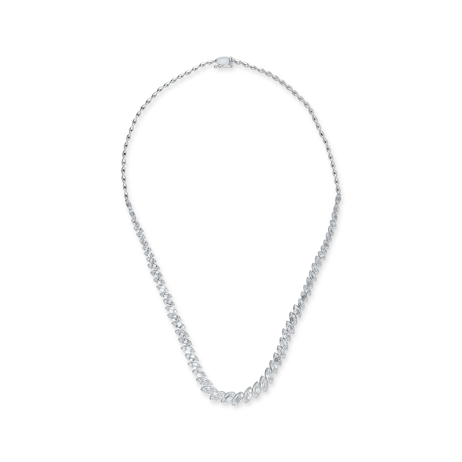 Colier tennis din aur alb cu diamante baguette si rotunde de 3.5ct